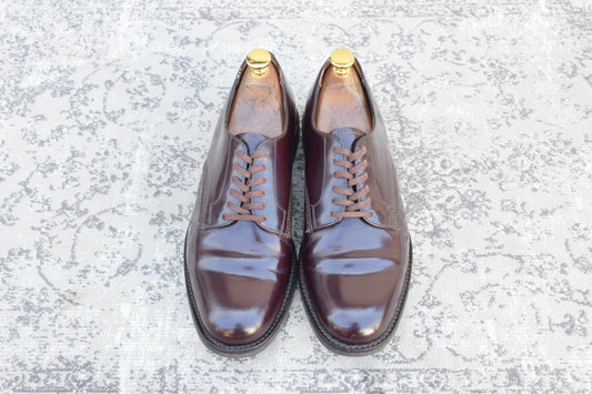 【良品】SANDERS サンダース 1384 OFFICER SHOE オフィサーシューズ プレーン 外羽根 赤茶 バーガンディー UK6 / 25.0cm【W3531】