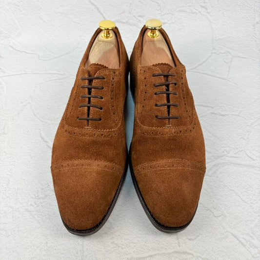 【美品】ヤンコ クウォーターブローグ 内羽根 スエード 茶 5 スペイン [W3111]