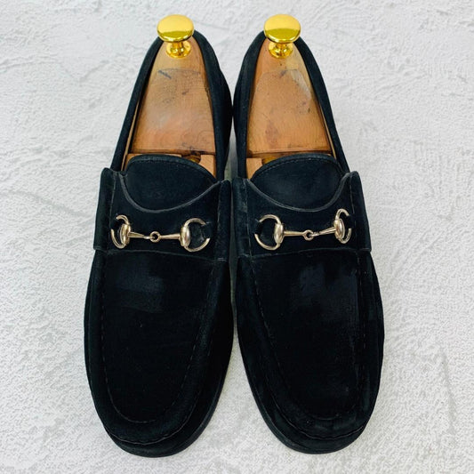 【良品】GUCCI ホースビットローファー スエード シルバー金具 黒 7.5