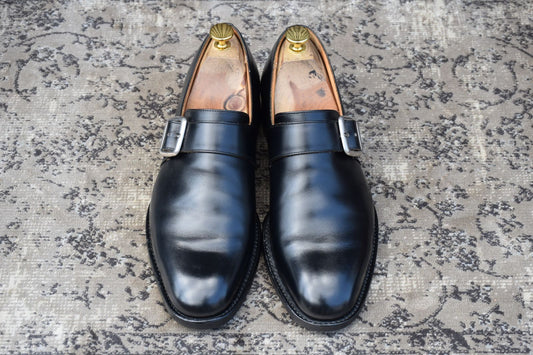 【良品】Church’s チャーチ WESTBURY ウエストバリー シングルモンク プレーン ストラップ シルバー金具 黒 ブラック UK6.5 / 25.0cm【W3343】