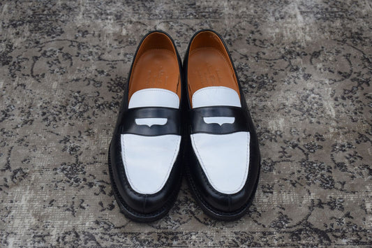 【美品】Jalan Sriwijaya ジャランスリヴァヤ 98998 GARUDA ガルーダ コインローファー バイカラー 黒 ブラック 白 ホワイト UK6.5 / 25cm【W3369】
