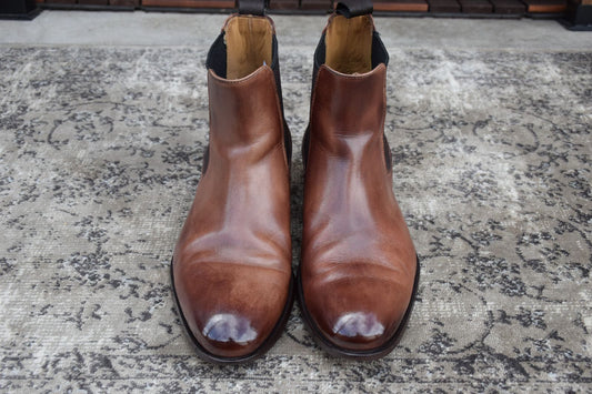 【良品】ACE MARKS エースマークス サイドゴアブーツ チェルシーブーツ プルストラップ パティーヌ 茶 ブラウン UK6.5 / 25cm【W3372】