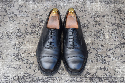 【リフト交換済み】JOSEPH CHEANEY&SONS ジョセフチーニーアンドサンズ HUDSON ハドソン コインローファー ハーフサドル 黒 ブラック UK6 / 24.5〜25.0cm【W3402】