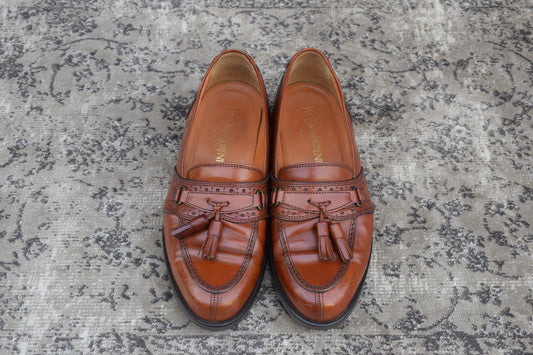 Yves Saint Laurent イヴ・サンローラン タッセルローファー サドル ブローグ 茶 ブラウン 25cm EEE【W3396】