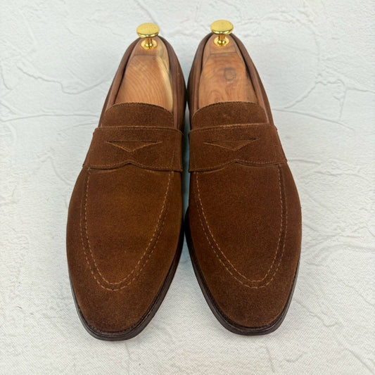 【美品】Crockett&Jones クロケットアンドジョーンズ SYDNEY シドニー コインローファー スエード 茶 UK7.5 / 26cm [W3281]