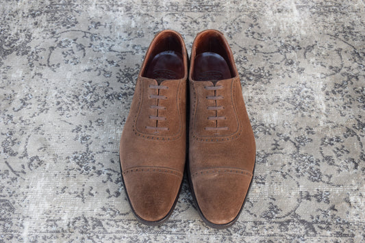 【良品】Crockett&Jones クロケットアンドジョーンズ ハンドグレードライン パンチドキャップ 内羽根 スエード 濃茶 ブラウン UK7.5 / 26cm【W2656】