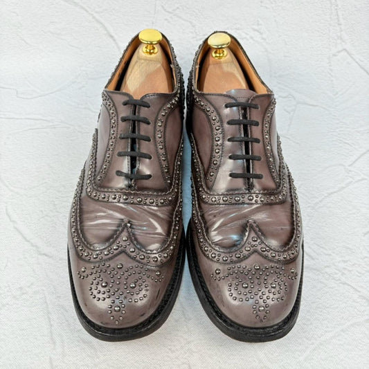 【希少】チャーチ バーウッドメット スタッズ フルブローグ グレー 85F 英国 [W3201]