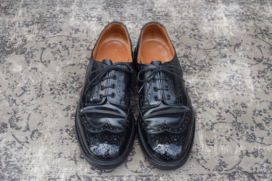【良品】Tricker’s トリッカーズ Burton バートン ウイング 外羽根 パテントレザー 黒 BLACK ブラック UK9.5 / 28cm【W3360】WINGTIP