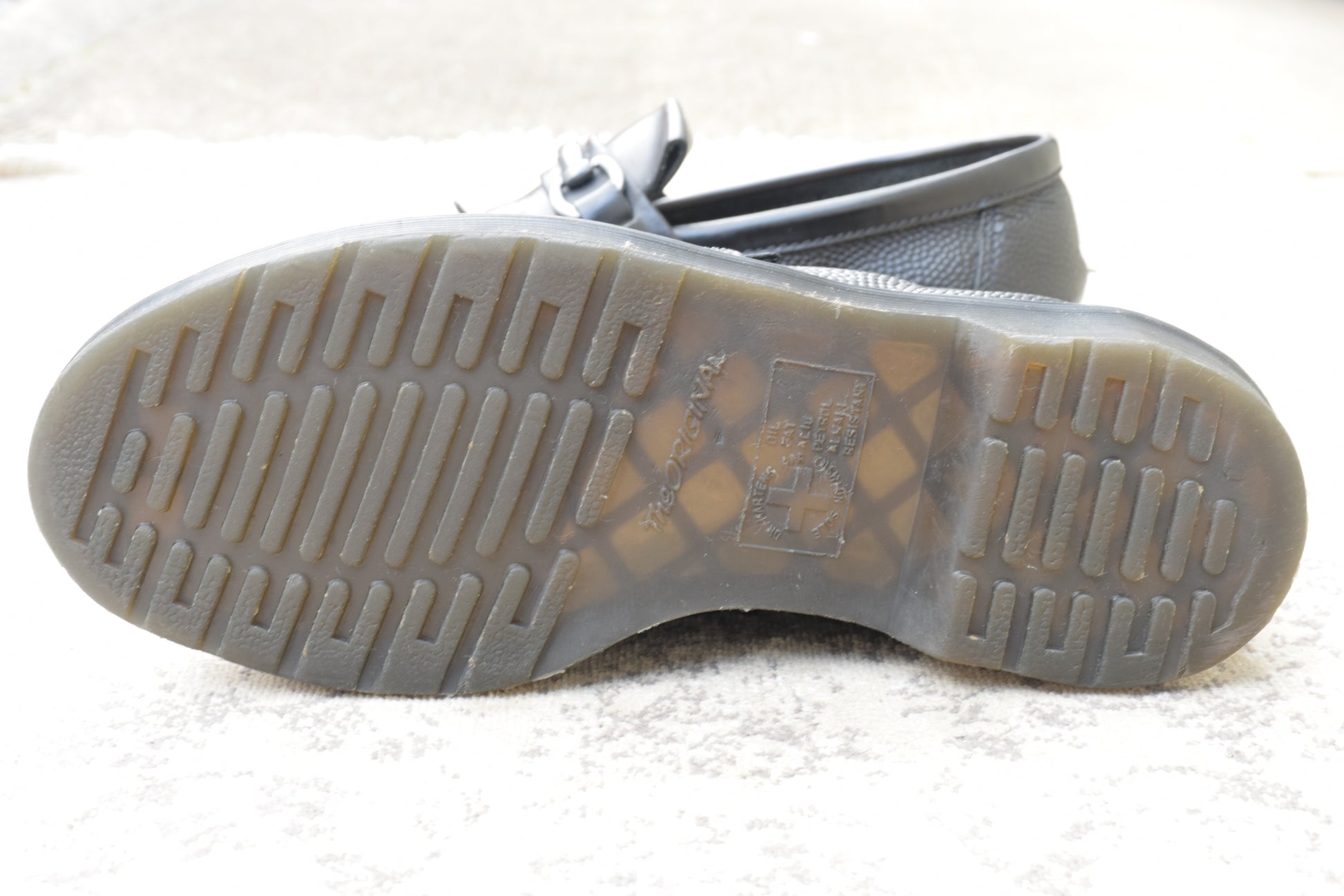 Color: Black; Sole: Dr. Martens air cushion sole; Features: Quilted bit loafers (embossed leather)