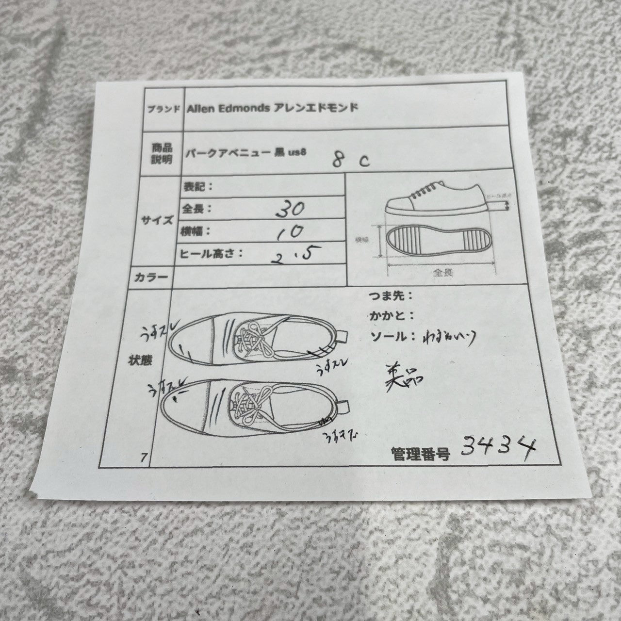 Brand: Allen Edmonds; Model: Park Avenue; Size: US 8 C / 26cm (equivalent to a size 26); Outsole: Total length 30cm / Width 10cm / Heel height 2.5cm