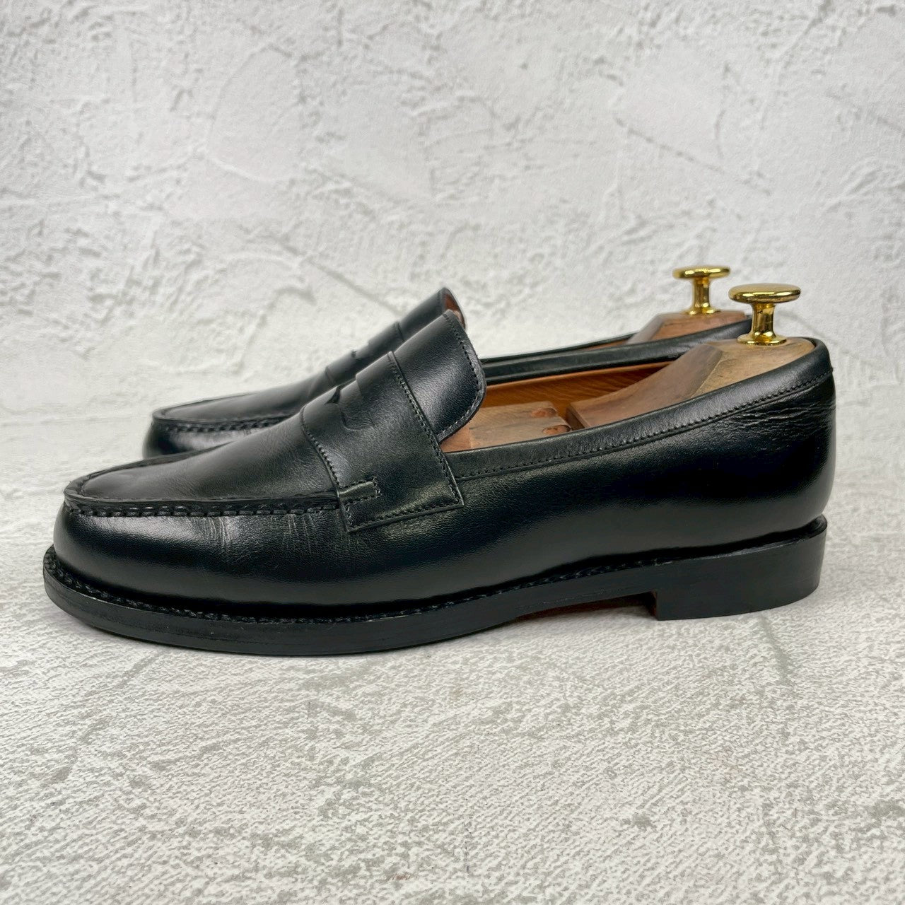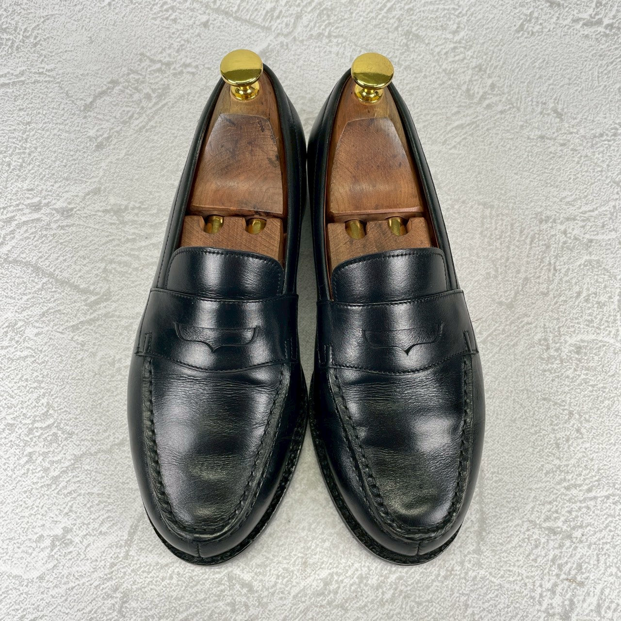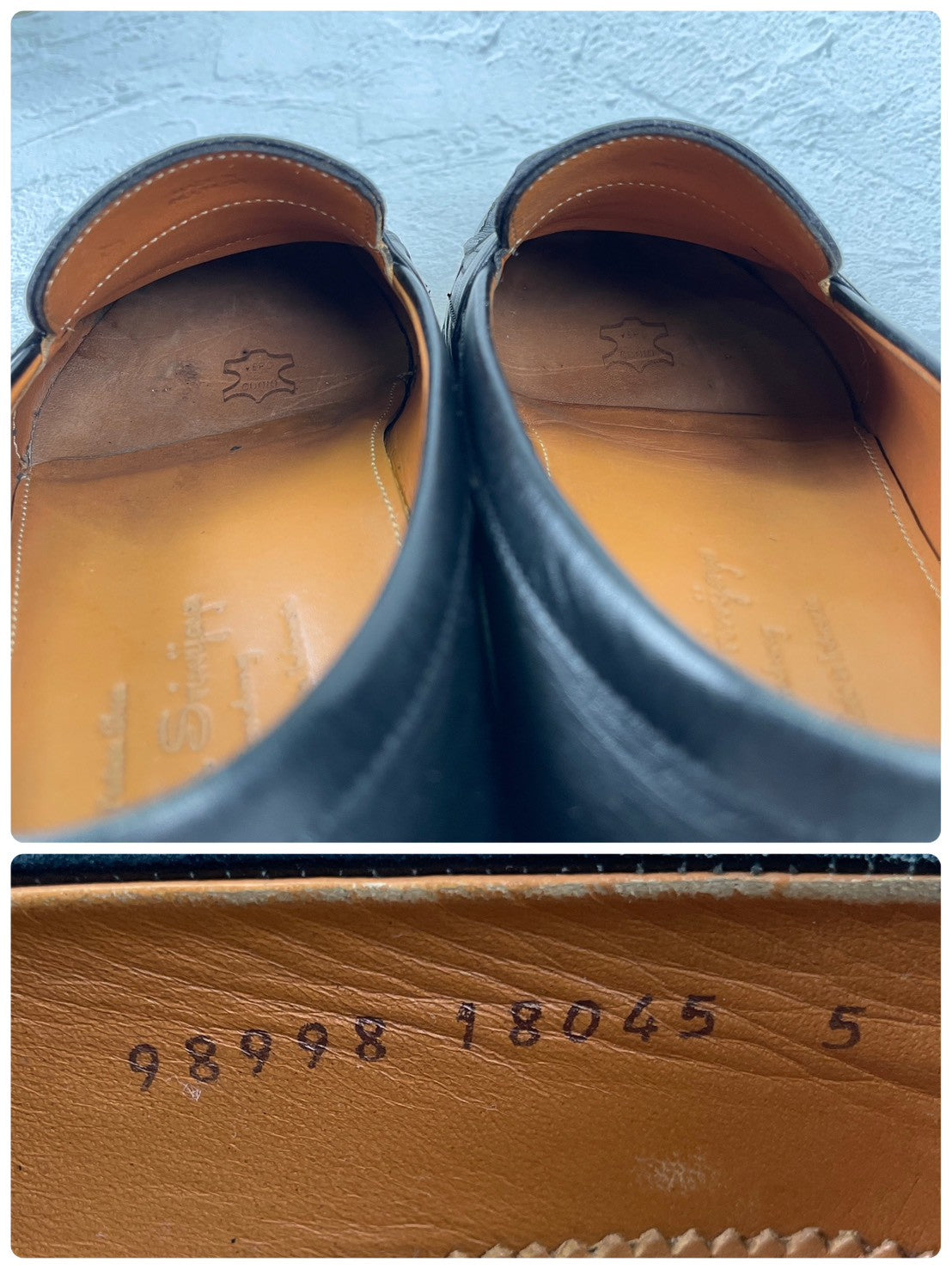 【美品】JALAN SRIWIJAYA ジャランスリワヤ 98998 GARUDA ガルーダ コインローファー ハーフサドル 黒 ブラック UK5 / 24.0cm【W3499】
