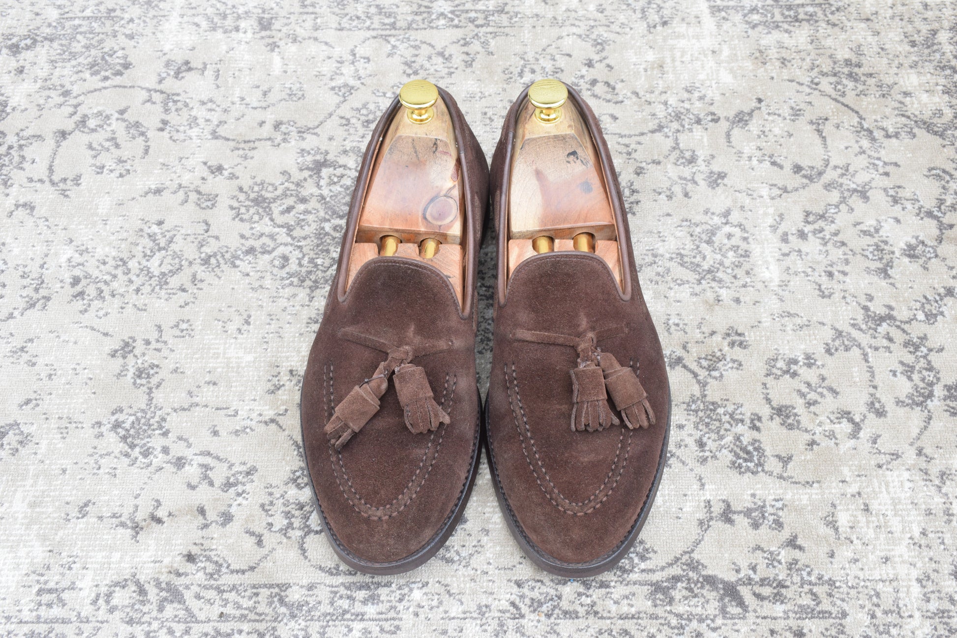 【良品】CROCKETT&JONES クロケットアンドジョーンズ Cavendish3 キャベンディッシュ3 タッセルローファー スエード シティソール 濃茶 ブラウン UK7 / 25.5cm【W3502】