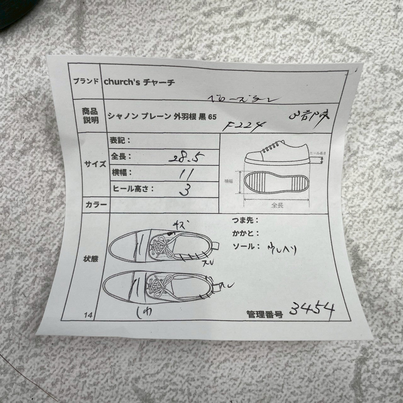 ・Upper (top): Wrinkles from wearing, scuffs on heel ・Lining (inside): Scuffs throughout, some signs of use ・Sole (sole): Half rubber installed, some wear on the lift ・Overall impression of the shoes: Although there is some wear, they are in good condition and still retain the presence that only a sturdy Shannon can offer *Please check the photos.