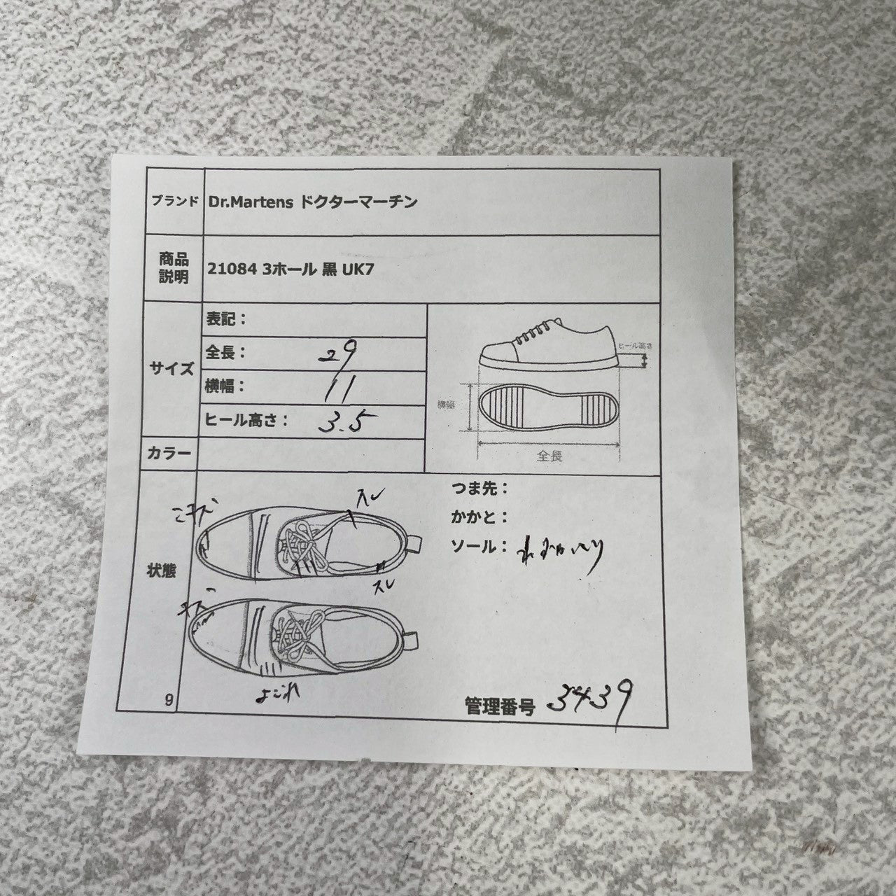 [Outsole] Total length 29cm / Width 11cm / Heel height 3.5cm (thick sole)