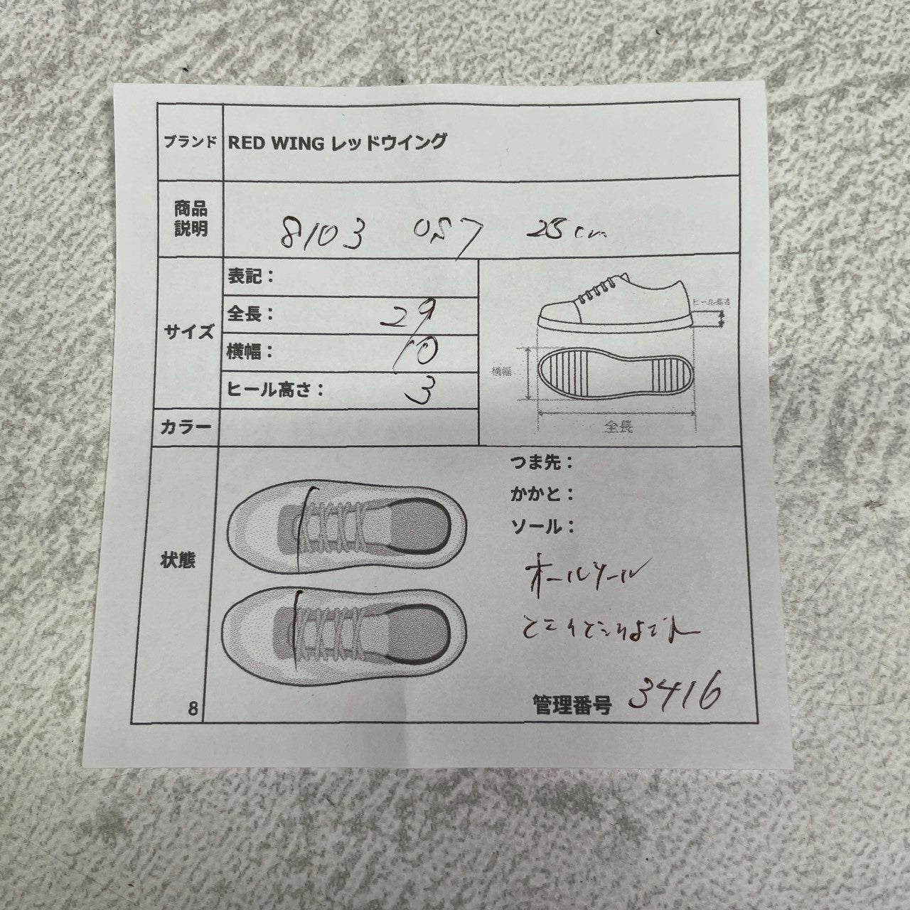 【オールソール済み】RED WING レッドウイング 8103 Classic Oxford クラシック オックスフォード Uチップ 外羽根 赤茶 オロラセット US7 / 25cm【W3416】