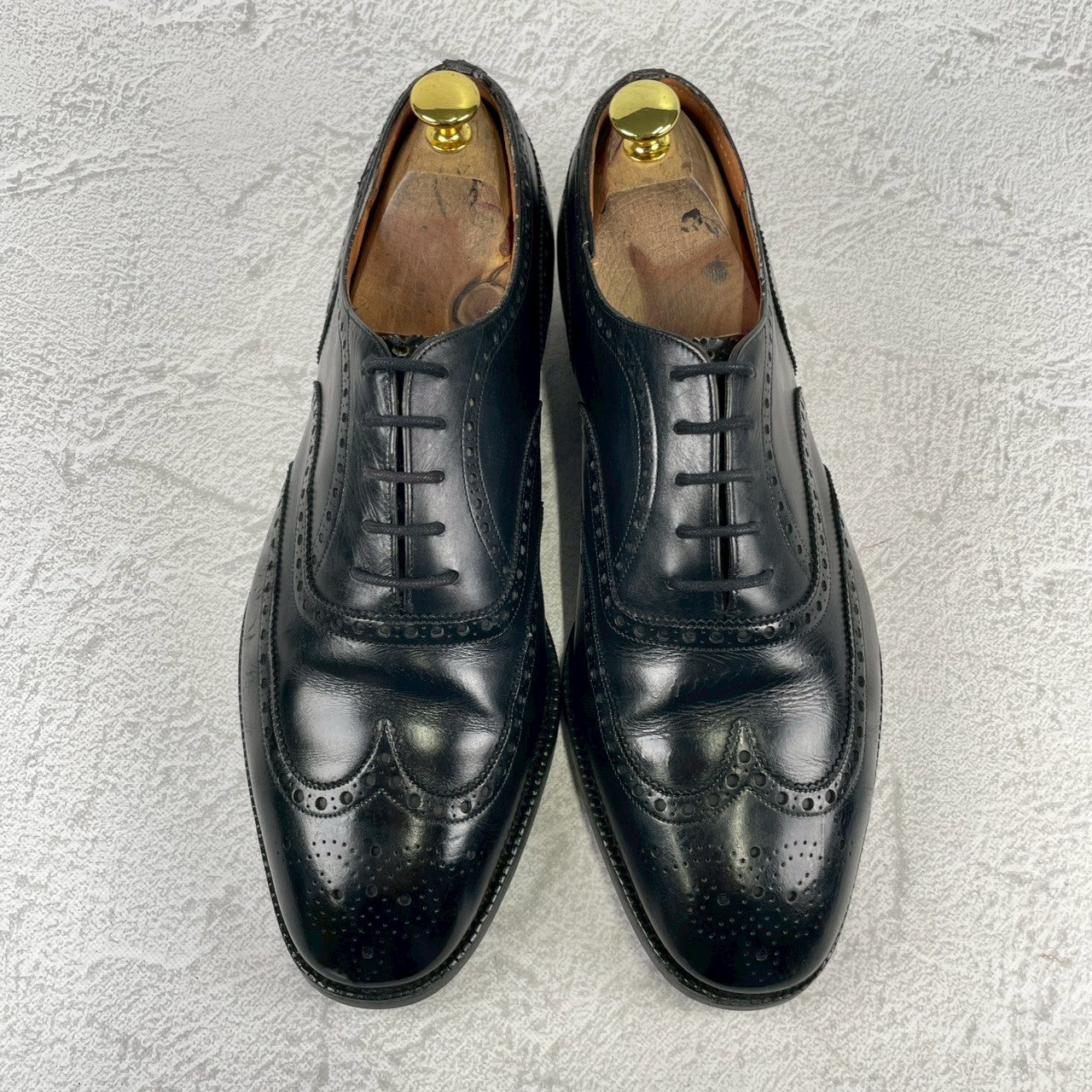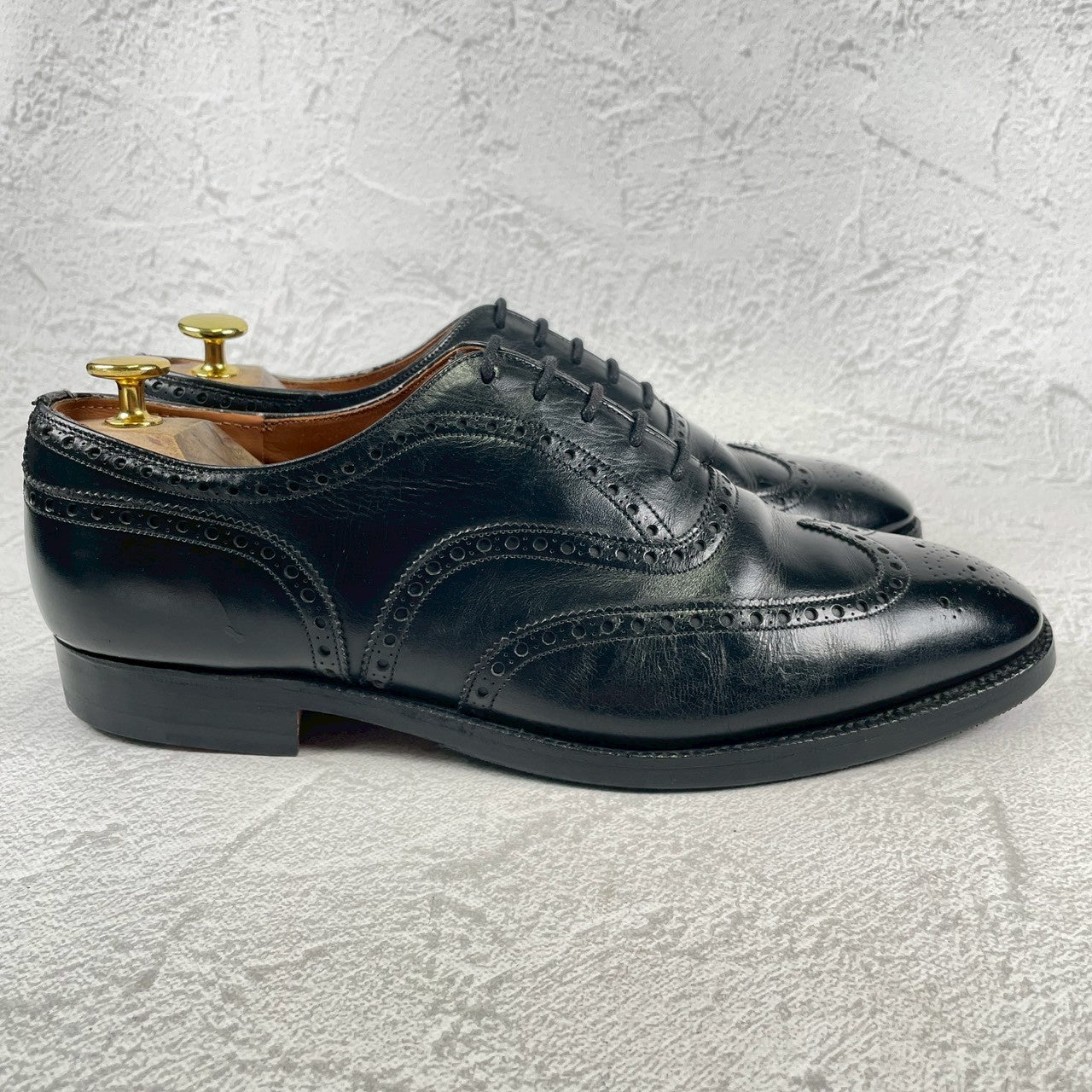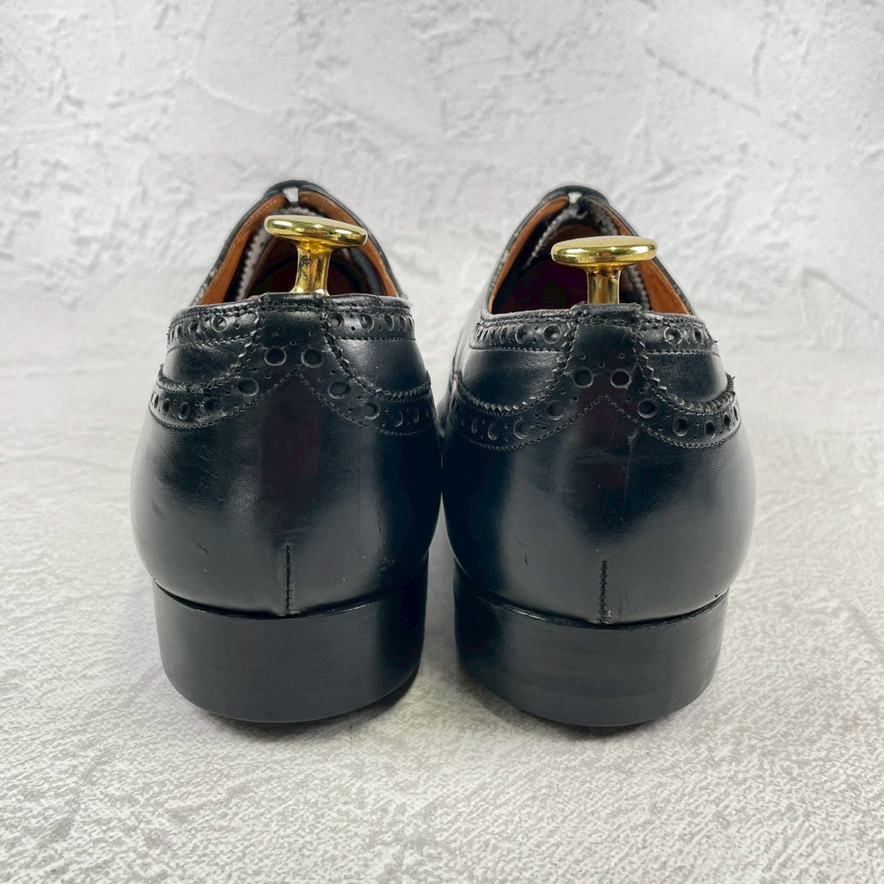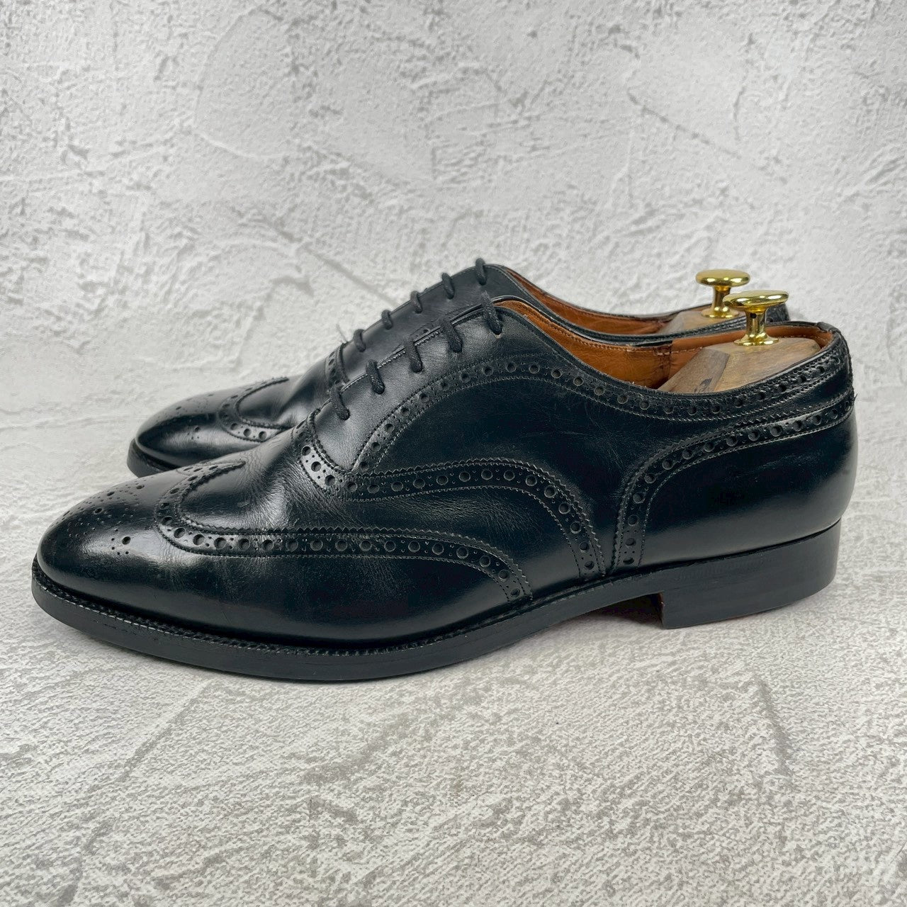 現行の173ラストのベースとなった「73ラスト」を採用しており、やや小ぶりなヒールカップと、英国伝統の力強いエッグトゥが描くシルエットは、現行品にはない唯一無二の気品を漂わせます。重厚なブローギング(穴飾り)は、ビジネスシーンに華やかさを添えるだけでなく、カントリーのルーツを感じさせるタフな装いにもマッチします。