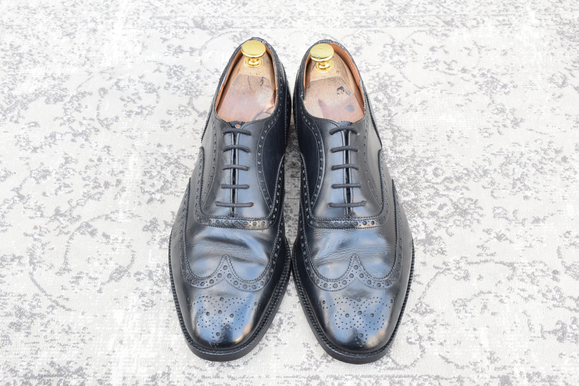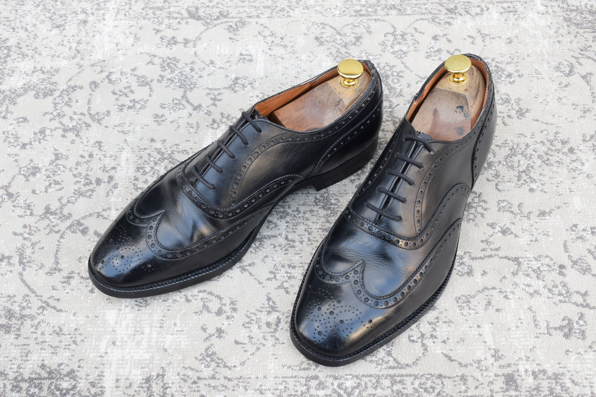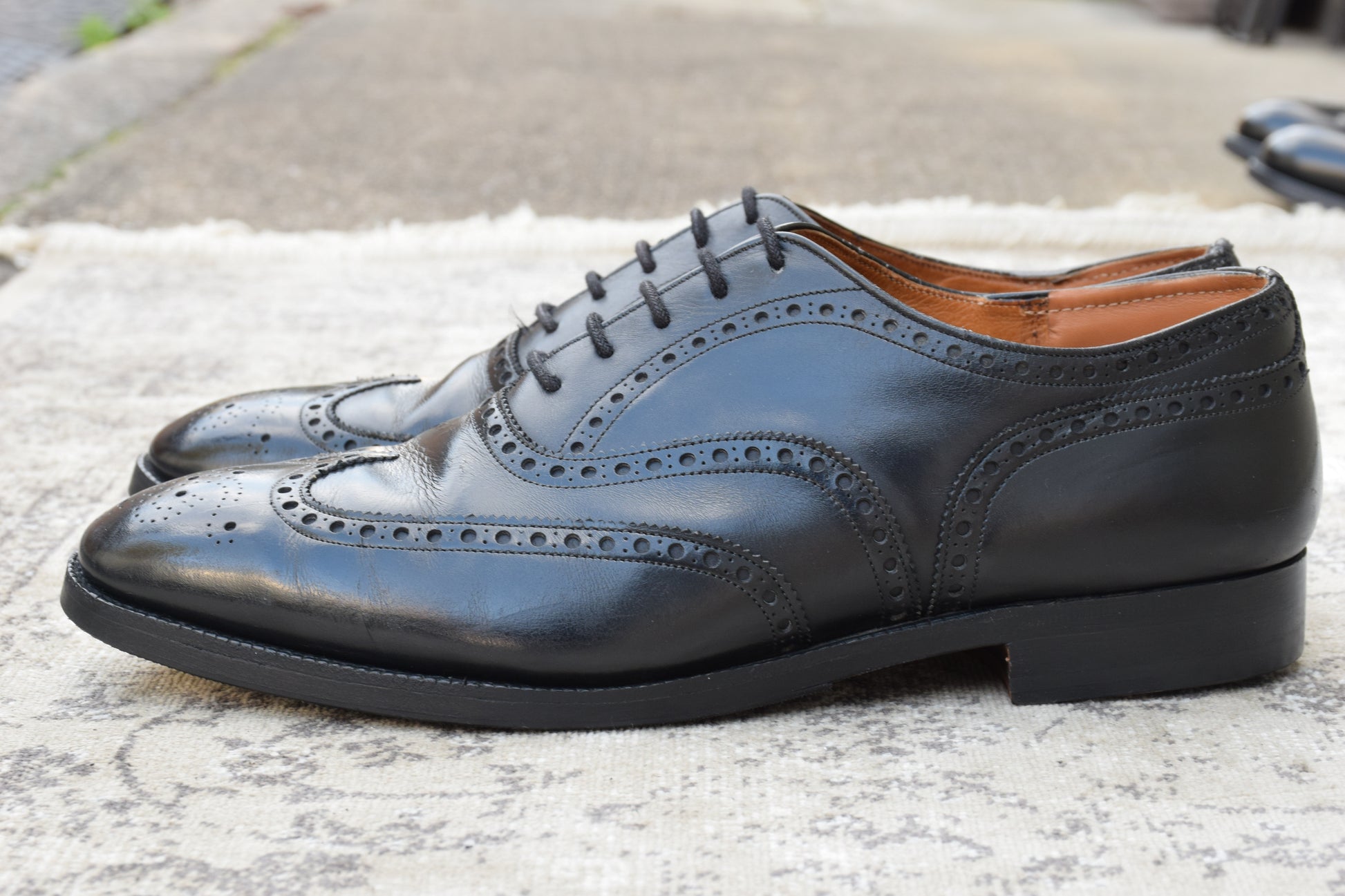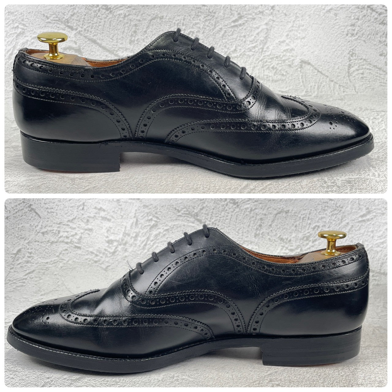現行の173ラストのベースとなった「73ラスト」を採用しており、やや小ぶりなヒールカップと、英国伝統の力強いエッグトゥが描くシルエットは、現行品にはない唯一無二の気品を漂わせます。重厚なブローギング(穴飾り)は、ビジネスシーンに華やかさを添えるだけでなく、カントリーのルーツを感じさせるタフな装いにもマッチします。