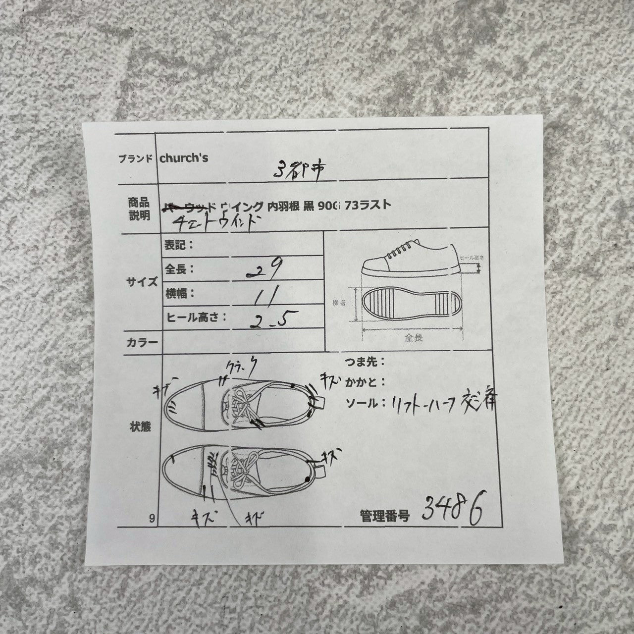 ・ソール(靴底)→ハーフラバー装着、リフト交換済み