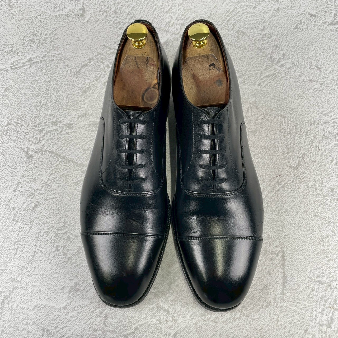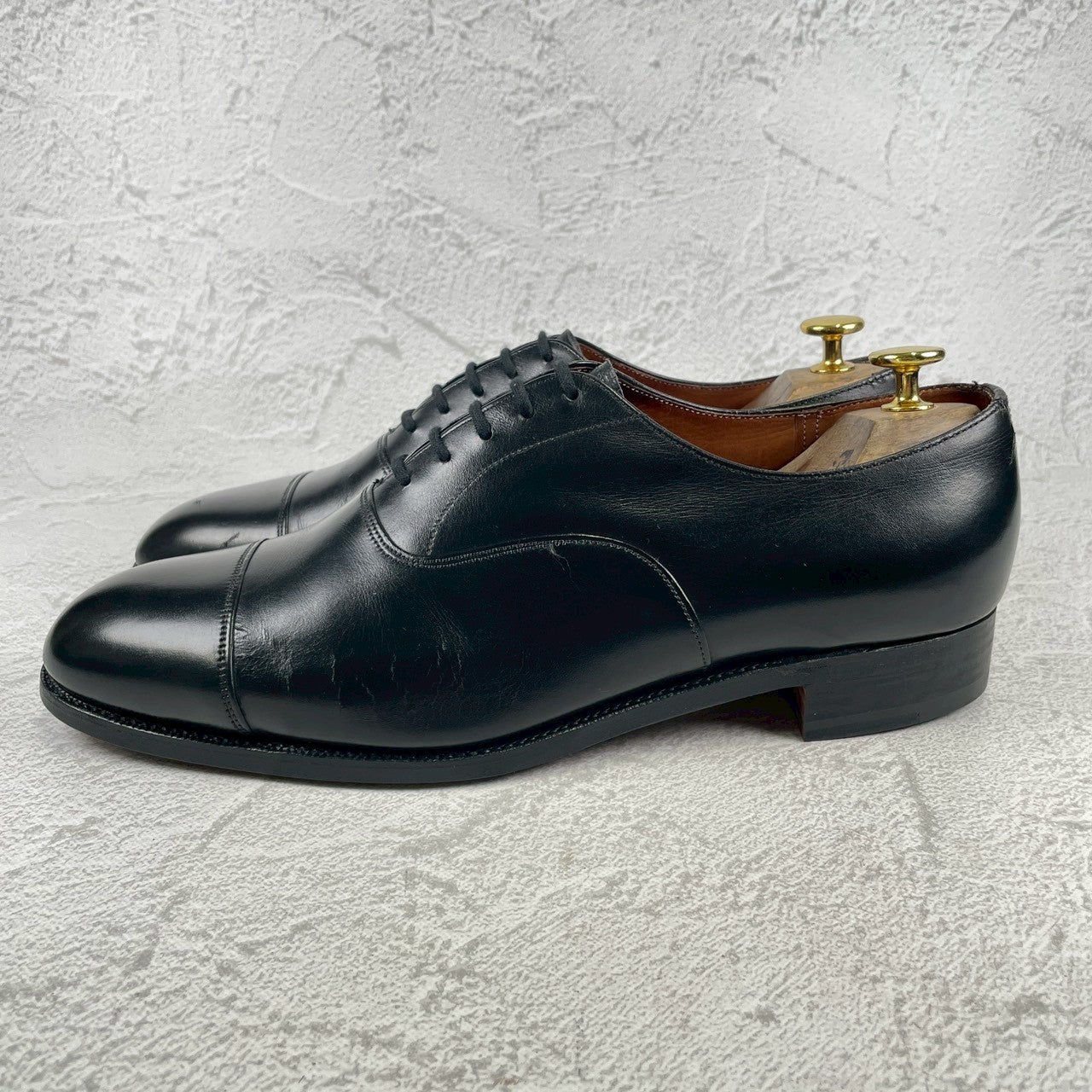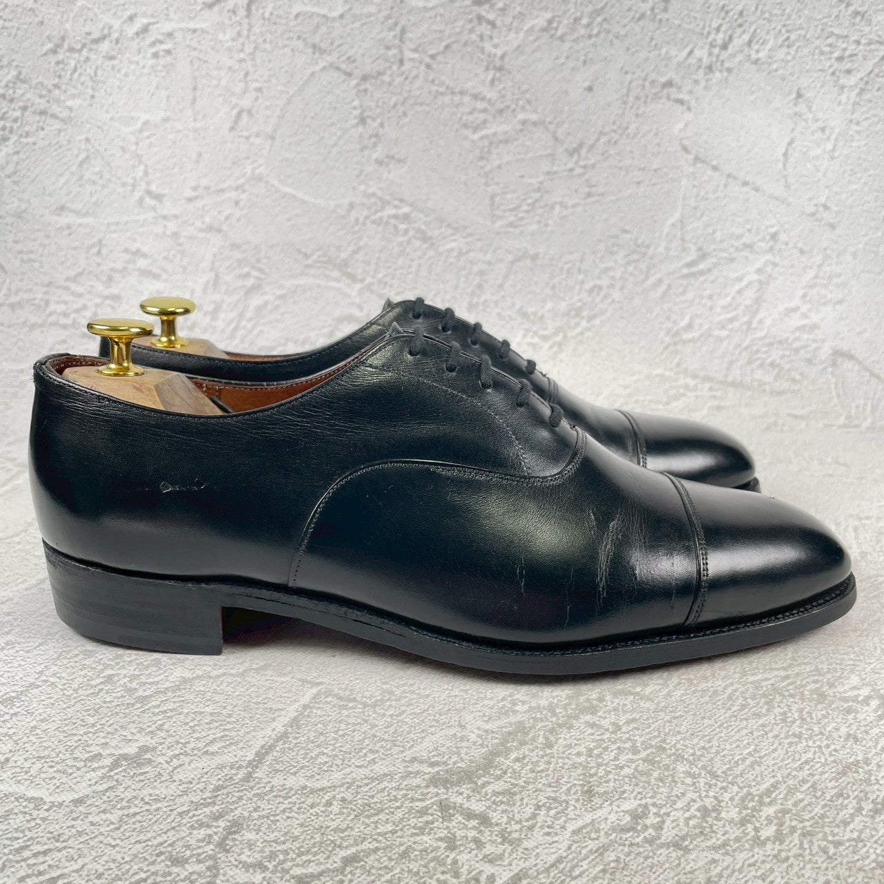 現行の173ラストの前身にあたる「73ラスト」。現行よりもややクラシックで、英国靴らしい質実剛健さと気品が同居するシルエットは、玄人好みの逸品。最高級のカウハイド(カーフレザー)を使用しており、手入れを繰り返すことで、鈍く重厚な光沢を放ち続けます。冠婚葬祭から最敬礼のビジネスシーンまで、これ一足で完結する「一級品」の風格をご堪能ください。