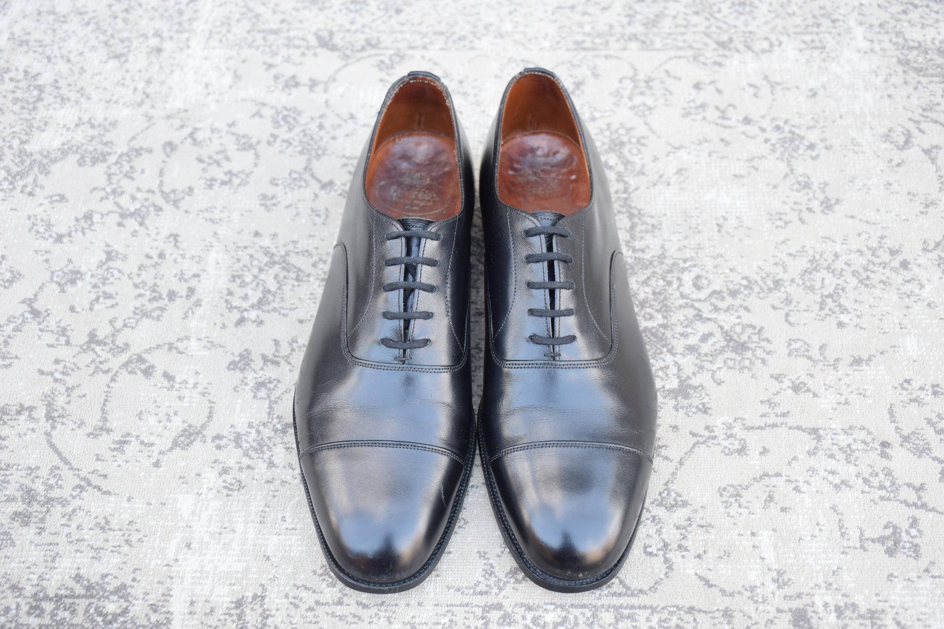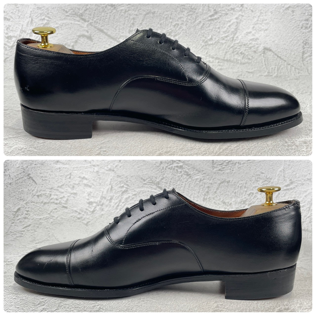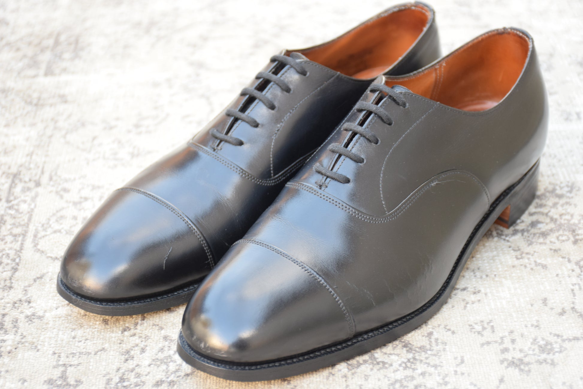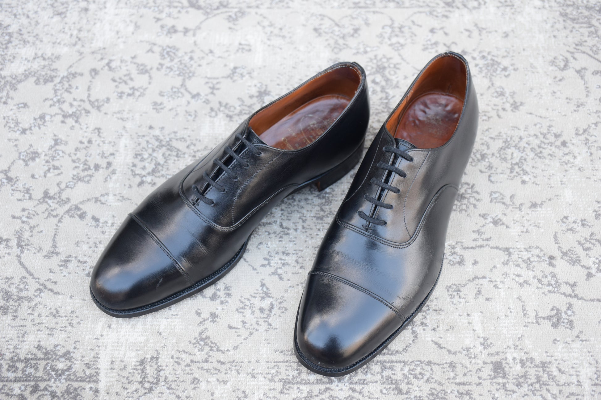 現行の173ラストの前身にあたる「73ラスト」。現行よりもややクラシックで、英国靴らしい質実剛健さと気品が同居するシルエットは、玄人好みの逸品。最高級のカウハイド(カーフレザー)を使用しており、手入れを繰り返すことで、鈍く重厚な光沢を放ち続けます。冠婚葬祭から最敬礼のビジネスシーンまで、これ一足で完結する「一級品」の風格をご堪能ください。