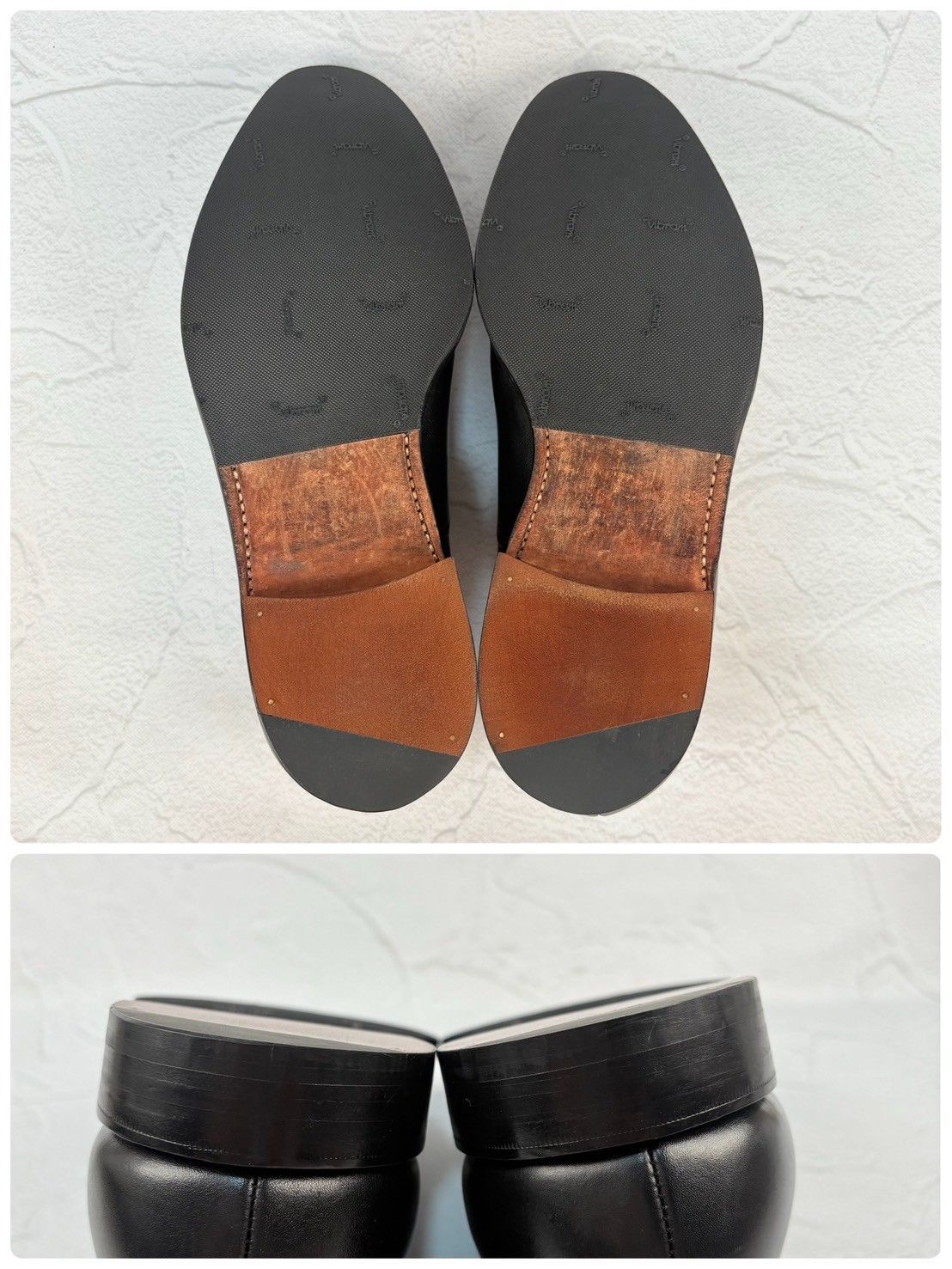 【コメント】 英国ノーサンプトンの名門「ジョセフチーニー」より、内羽根ストレートチップ「LIME」のご紹介です。シンプルで端正なデザインは、ビジネスからフォーマルまで幅広く対応できる定番モデル。 リフト交換済みに加え、ハーフラバーも装着済みのため、耐久性に優れ長く安心してお使いいただけます。英国靴らしいクラシックな雰囲気を求める方におすすめの一足です。 【スタイル提案】 ビジネス・きれいめ 【コンディション】 ・アッパー(上部)→履きジワ、つま先に小傷あり ・ライニング(内側)→良好 ・ソール(靴底)→リフト交換済み、ハーフラバー装着済みで良好 ・靴の総評→やや使用感ありますが、まだまだご愛用いただけます ※写真でもご確認ください。 W3353.87