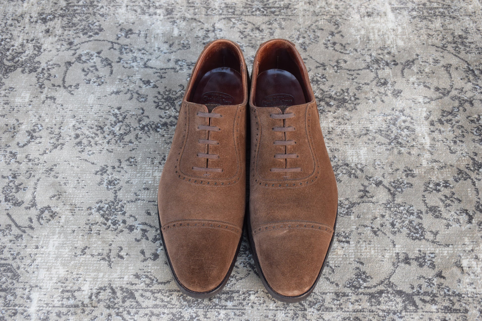 ・靴の総評→ 全体的に使用感は控えめで、上品なスエードの質感をしっかり楽しめる一足です。まだまだご愛用いただけます。