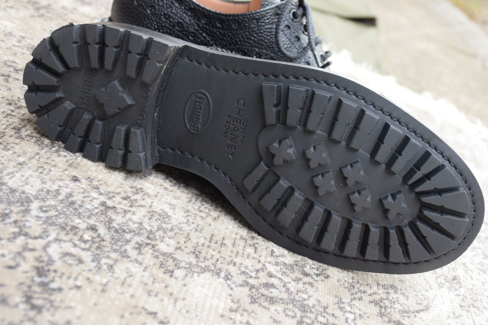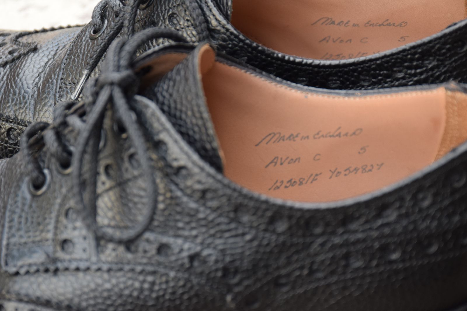 イギリスの名門、JOSEPH CHEANEY & SONS(ジョセフチーニーアンドサンズ)の「AVON エイボン」です。重厚感のある黒グレインレザーを使用し、堅牢さと上品さを兼ね備えた一足。クラシックなシルエットでありながら、素材感がさりげない個性を演出してくれます。今回の商品は極美品コンディションで、箱・保護袋も揃った希少な付属品付き。コレクションや実用に最適です。