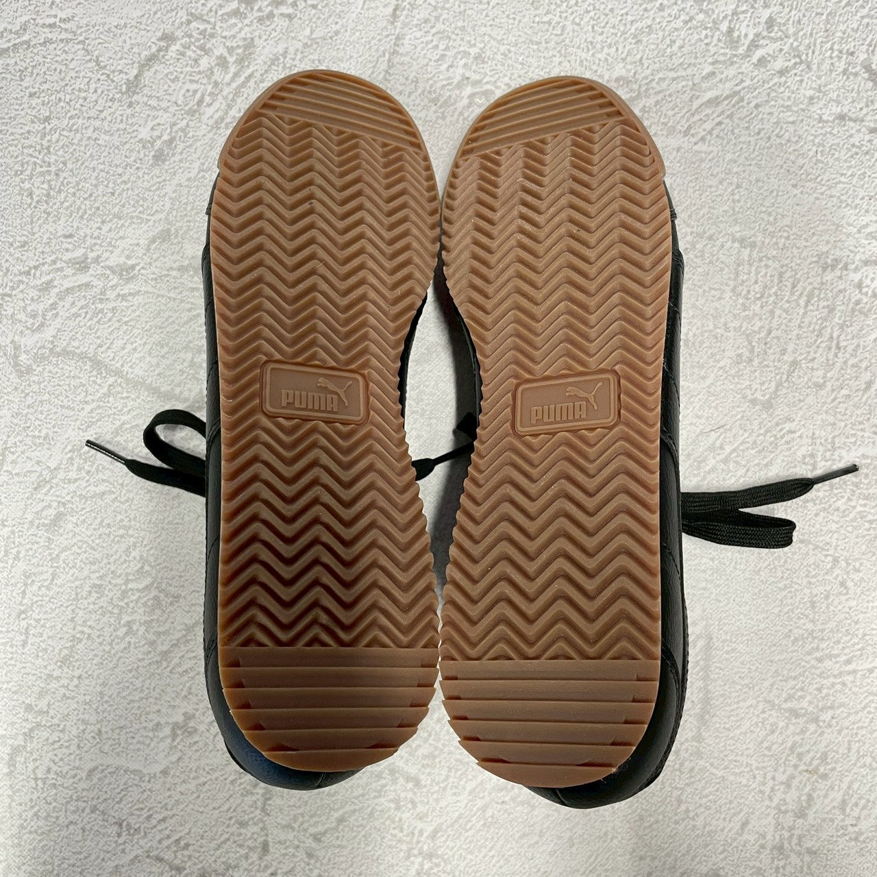 PUMAのTurino FSL(チュリーノFSL)は、レトロなランニングシューズに着想を得た、クラシックなデザインが魅力の一足。アッパーにはシンプルなブラックの合成皮革を使用し、ホワイトのサイドラインが映えるモダンな仕上がり。軽量で履きやすく、タウンユースから軽い運動まで対応可能です。スラックスやデニムと合わせた大人カジュアルにもおすすめのモデルです。