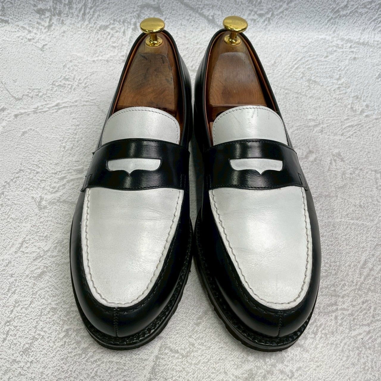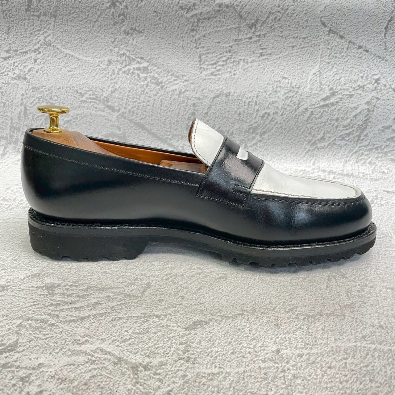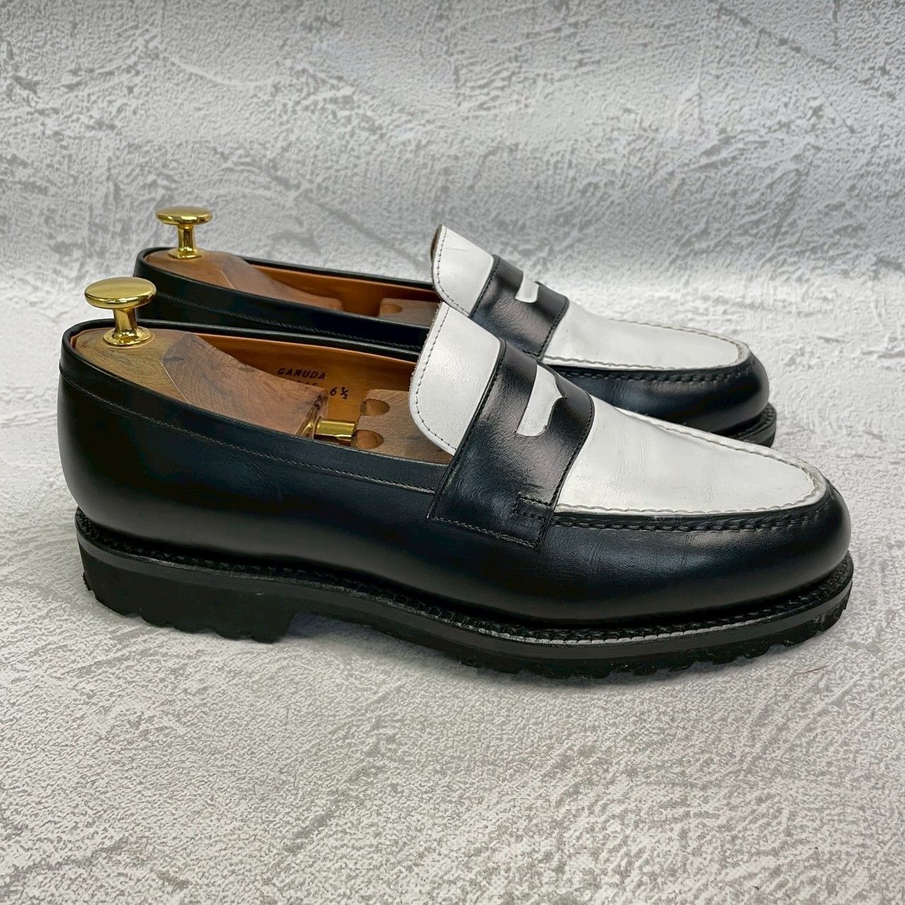 【美品】Jalan Sriwijaya ジャランスリヴァヤ 98998 GARUDA ガルーダ コインローファー バイカラー 黒 ブラック 白 ホワイト UK6.5 / 25cm【W3369】