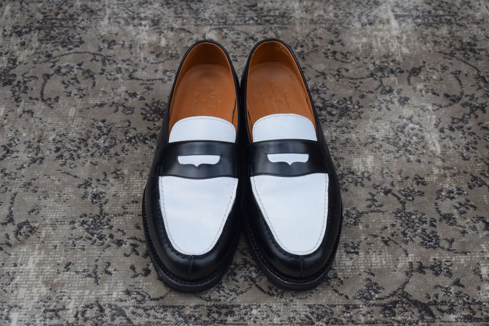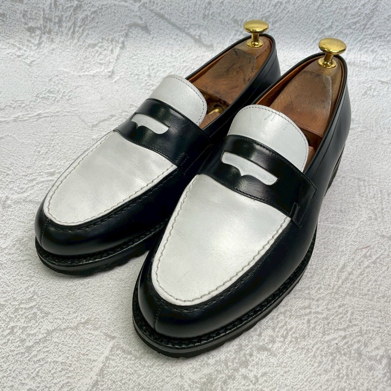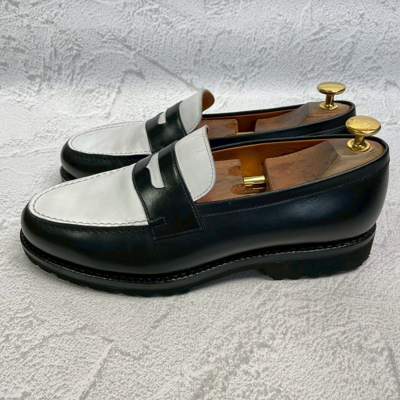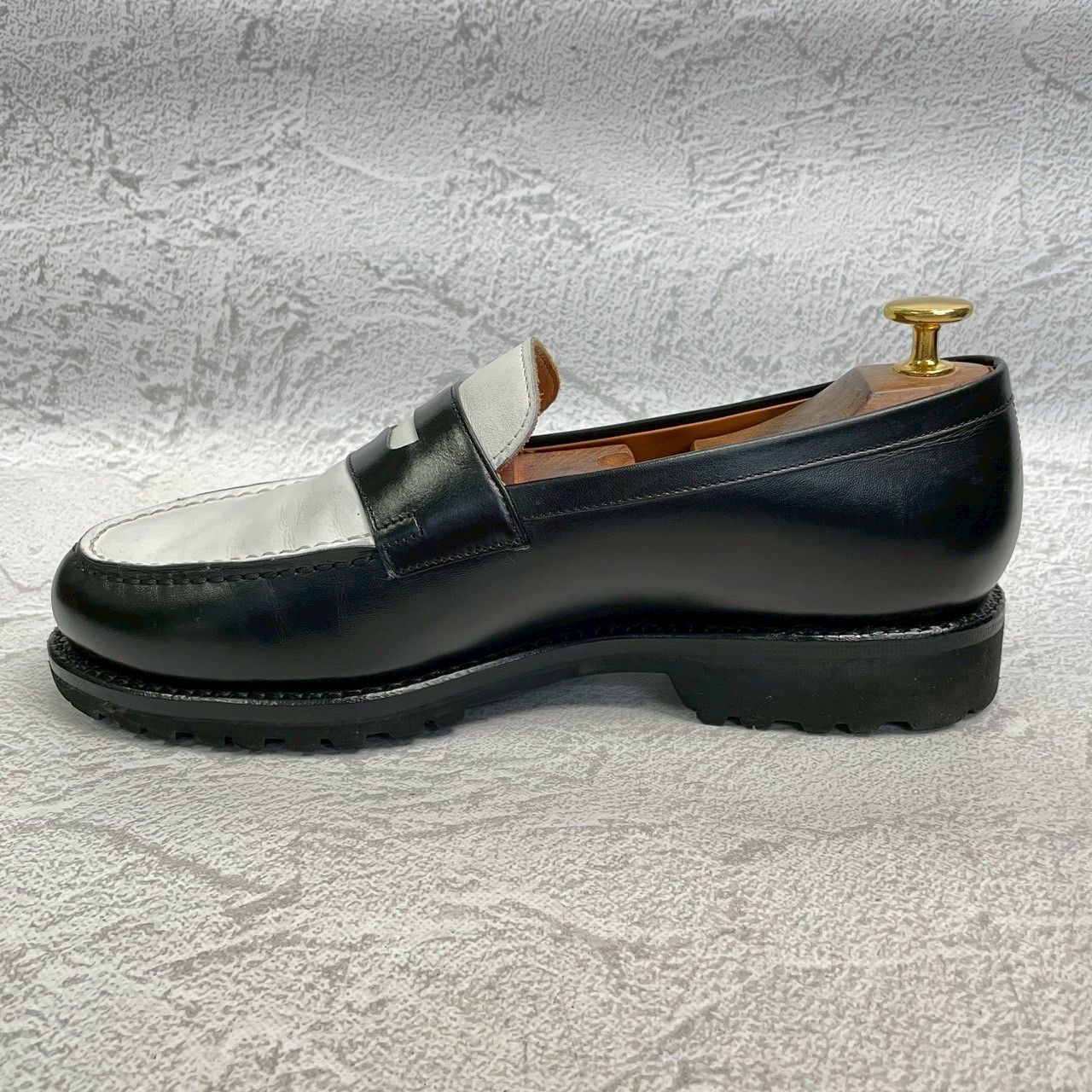 【美品】Jalan Sriwijaya ジャランスリヴァヤ 98998 GARUDA ガルーダ コインローファー バイカラー 黒 ブラック 白 ホワイト UK6.5 / 25cm【W3369】