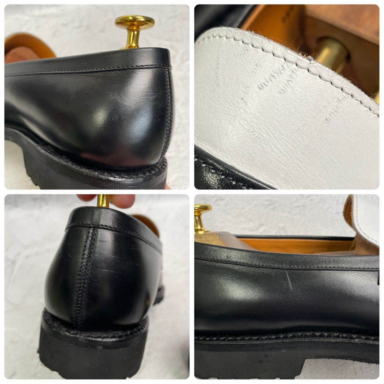 『ヴィンテージ好きに響く、白黒コインローファーの洒落感』 【ブランド】25.0 【モデル】98998 GARUDA ガルーダ コインローファー 【サイズ】UK6.5 / 約25cm 【アウトソール】全長28cm / 横幅10cm / ヒール高さ3cm(目安) 【カラー】白黒 ホワイト × ブラック WHITE × BLACK 【ソール】ビブラムソール 【仕様】コインローファー / バイカラー / スリッポン 【コメント】 インドネシア発の人気ブランド Jalan Sriwijaya(ジャランスリワヤ)の「GARUDA(ガルーダ)」コインローファー。ホワイトとブラックのバイカラー仕様で、クラシカルかつモダンな雰囲気を演出します。ビブラムソールを採用しており、快適な履き心地と耐久性を兼ね備えた実用性の高い一足。カジュアルからきれいめスタイルまで、幅広いコーディネートに活躍します。 【スタイル提案】 きれいめ・カジュアル・古着・雨の日 【コンディション】 ・アッパー(上部):軽い履きじわあり。革の状態良好。 ・ライニング(内側):履き口に軽い汚れ、かかと部分に薄い擦れあり ・ソール(靴底): ・靴の総評:ビブラムソール搭載で歩行性能も高く、見た目と実用性を兼ね備えた一足。状態は美品に近く、まだまだ長くお使いいただけます。 ※詳細は写真でもご確認ください。 W3369.76