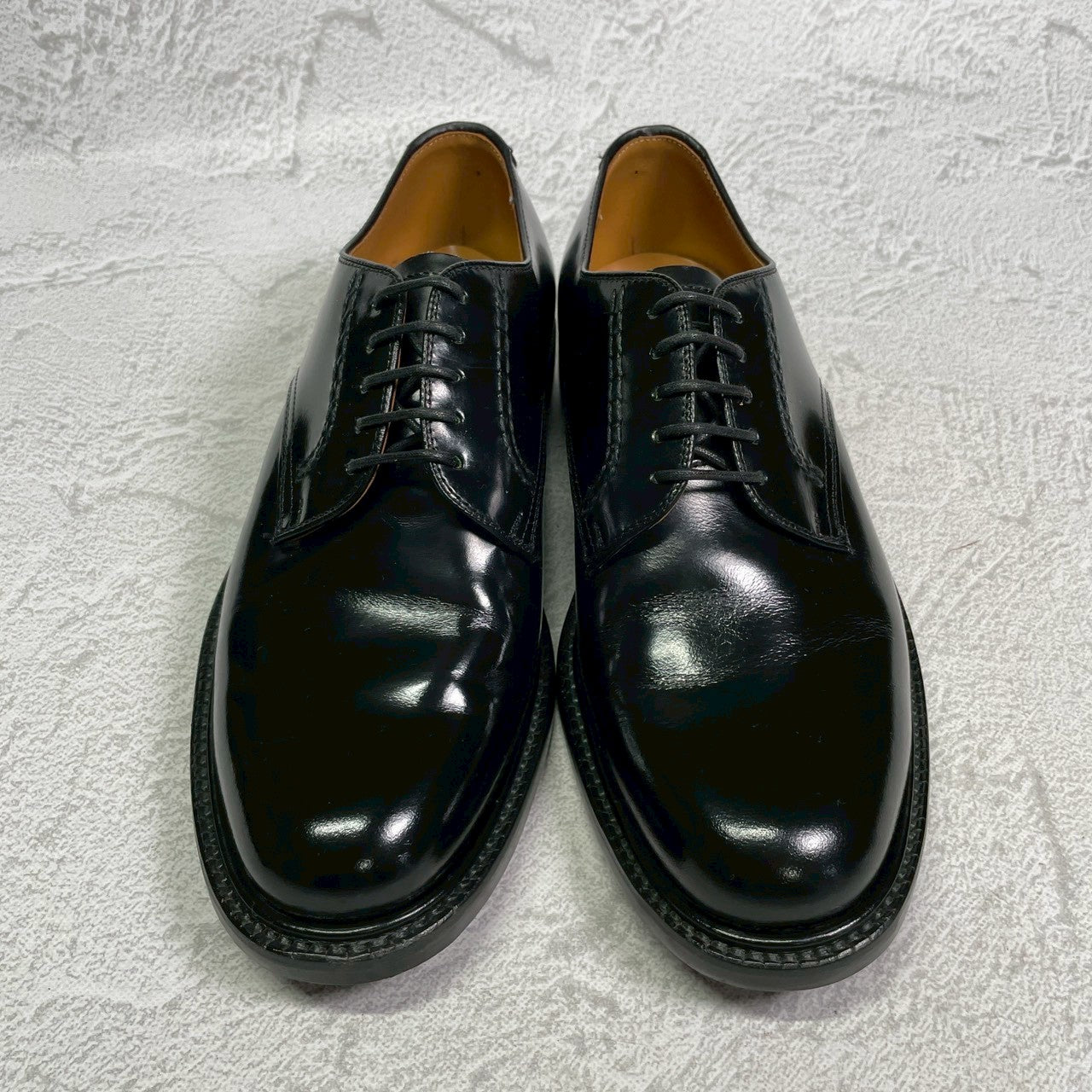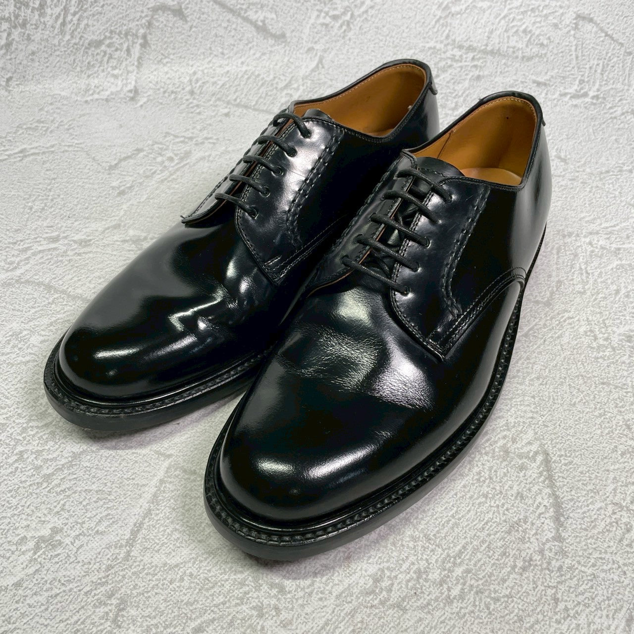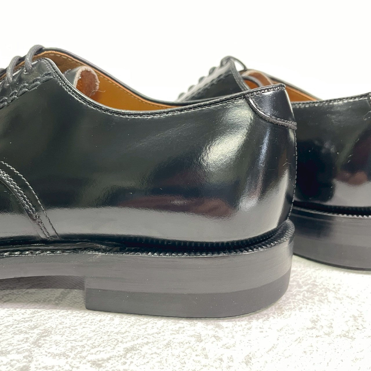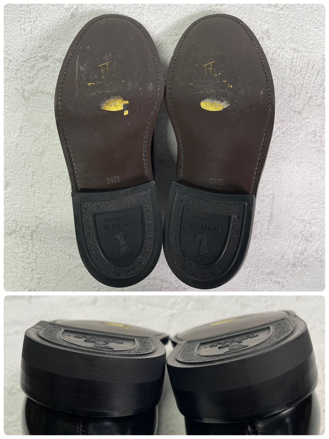 『仕事靴に“ちょうどいい”一足。気負わず履けるリーガル』 ~~~~~商品詳細~~~~~ 【ブランド】REGAL / リーガル 【モデル】プレーン 外羽根 【サイズ】24cm EE 【アウトソール】全長28cm / 横幅10.5cm / ヒール高さ2.5cm 【カラー】黒 / ブラック / BLACK 【ソール】ラバーソール 【仕様】外羽根式 / プレーントゥ / ガラスレザー 【付属品】箱 ~~~~~商品説明~~~~~ 【コメント】 ビジネスシューズの定番ブランド「リーガル」より、シンプルで使い勝手の良いプレーントゥ。外羽根式で足入れしやすく、ケアが簡単なガラスレザー仕様のため、日常使いにも最適。既に1〜2足お持ちの方の“ローテーション用”にもおすすめです。 【コンディション】 ・アッパー(上部)→右足つま先に小傷、履きジワ、左かかとに軽い擦れあり ・ライニング(内側)→大きなダメージなし ・ソール(靴底)→目立つ摩耗なし、美品状態 ・靴の総評→わずかな使用感はありますが、全体的に綺麗な印象で、まだまだ長くご使用いただけます。ビジネススタイルを支える実用的な一足です。 ※写真でもご確認ください。 _______________