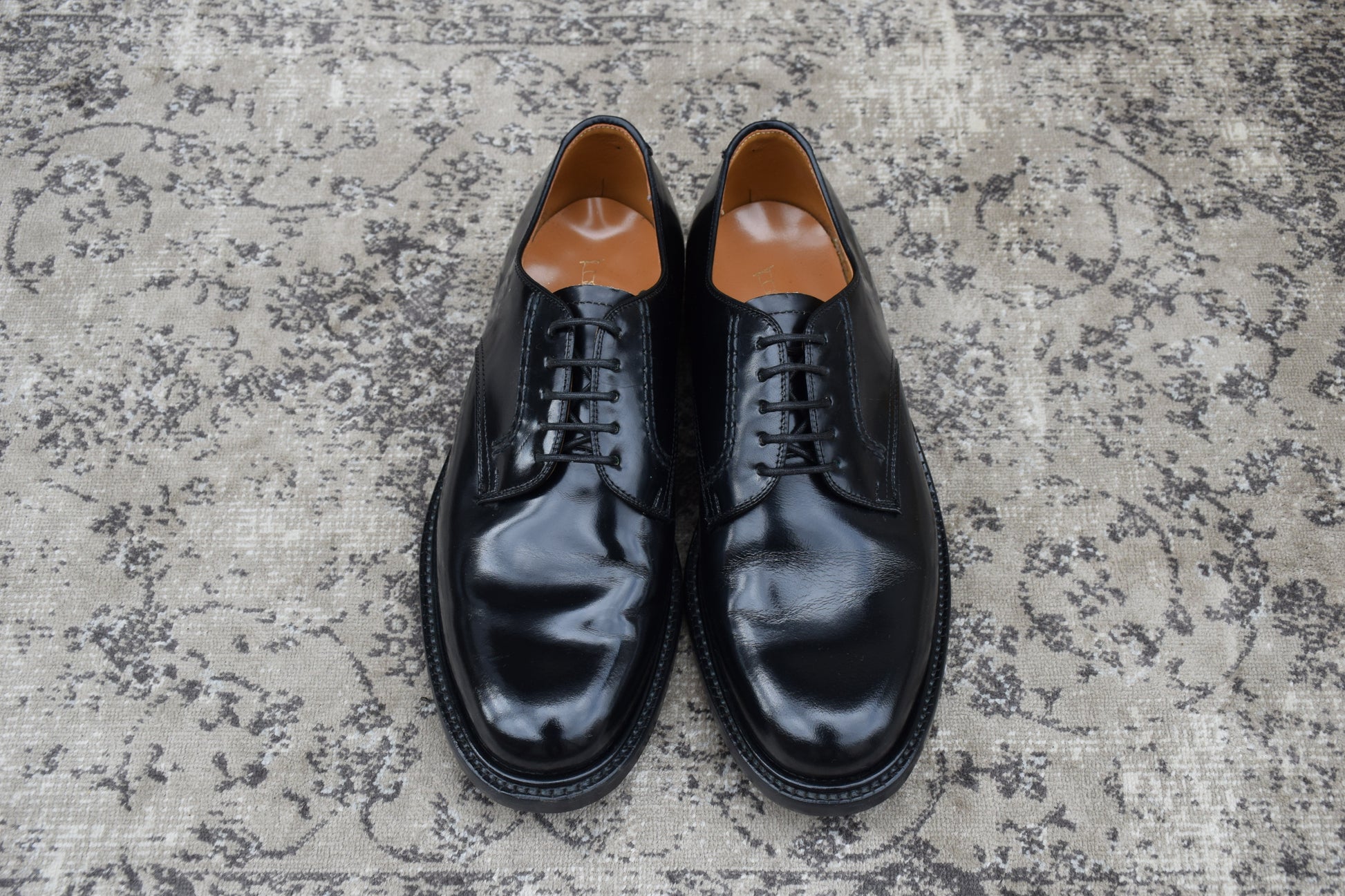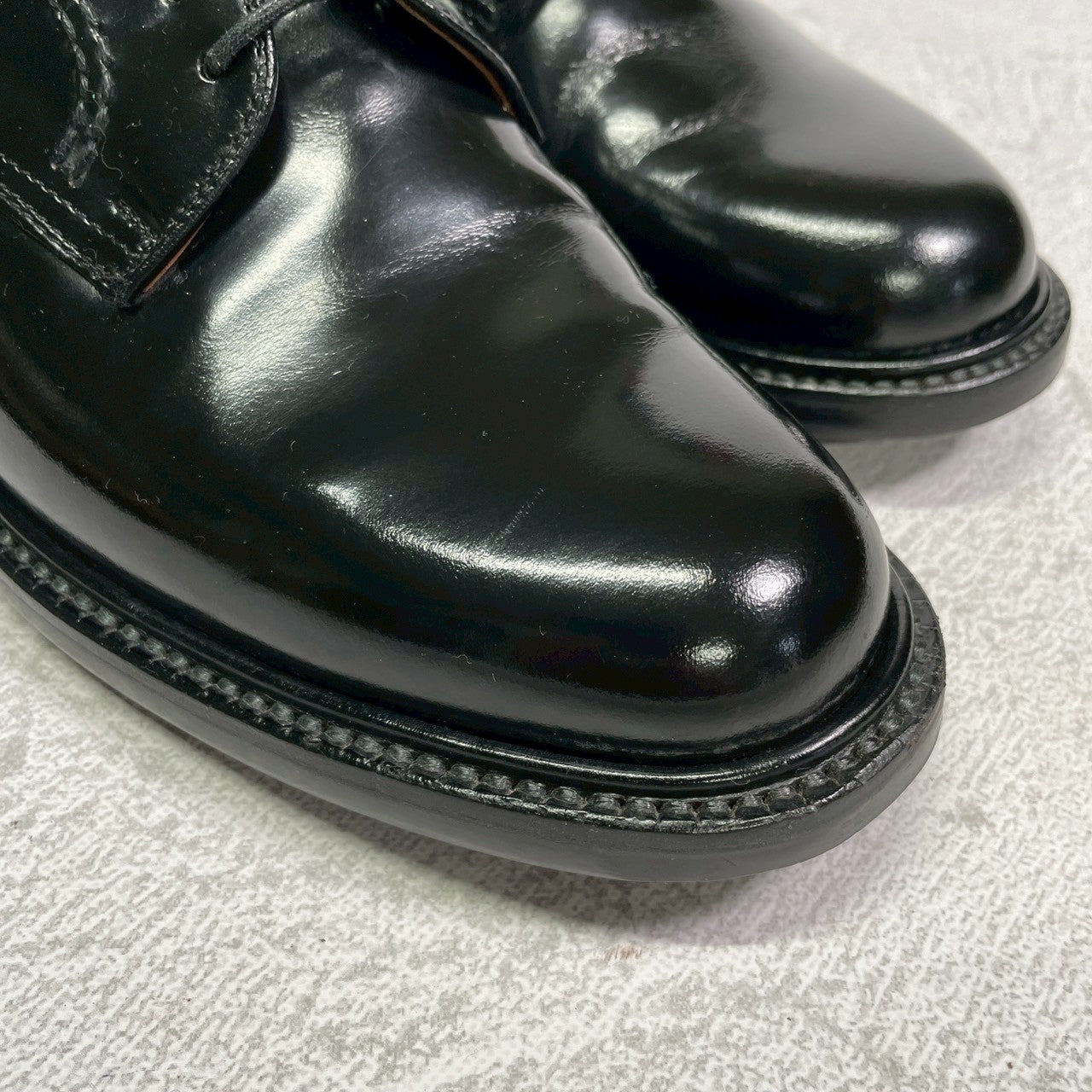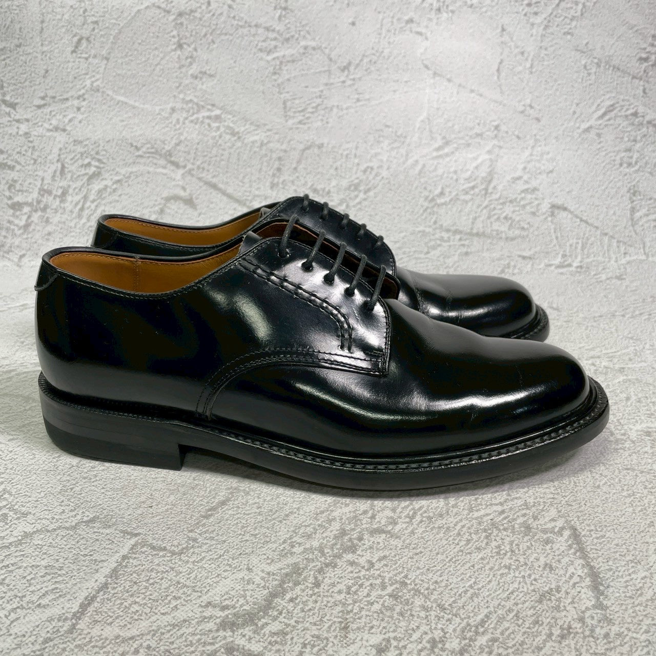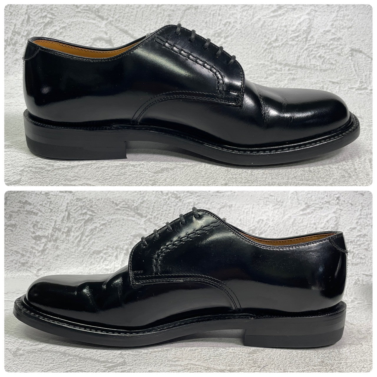 『仕事靴に“ちょうどいい”一足。気負わず履けるリーガル』 ~~~~~商品詳細~~~~~ 【ブランド】REGAL / リーガル 【モデル】プレーン 外羽根 【サイズ】24cm EE 【アウトソール】全長28cm / 横幅10.5cm / ヒール高さ2.5cm 【カラー】黒 / ブラック / BLACK 【ソール】ラバーソール 【仕様】外羽根式 / プレーントゥ / ガラスレザー 【付属品】箱 ~~~~~商品説明~~~~~ 【コメント】 ビジネスシューズの定番ブランド「リーガル」より、シンプルで使い勝手の良いプレーントゥ。外羽根式で足入れしやすく、ケアが簡単なガラスレザー仕様のため、日常使いにも最適。既に1〜2足お持ちの方の“ローテーション用”にもおすすめです。 【コンディション】 ・アッパー(上部)→右足つま先に小傷、履きジワ、左かかとに軽い擦れあり ・ライニング(内側)→大きなダメージなし ・ソール(靴底)→目立つ摩耗なし、美品状態 ・靴の総評→わずかな使用感はありますが、全体的に綺麗な印象で、まだまだ長くご使用いただけます。ビジネススタイルを支える実用的な一足です。 ※写真でもご確認ください。 _______________