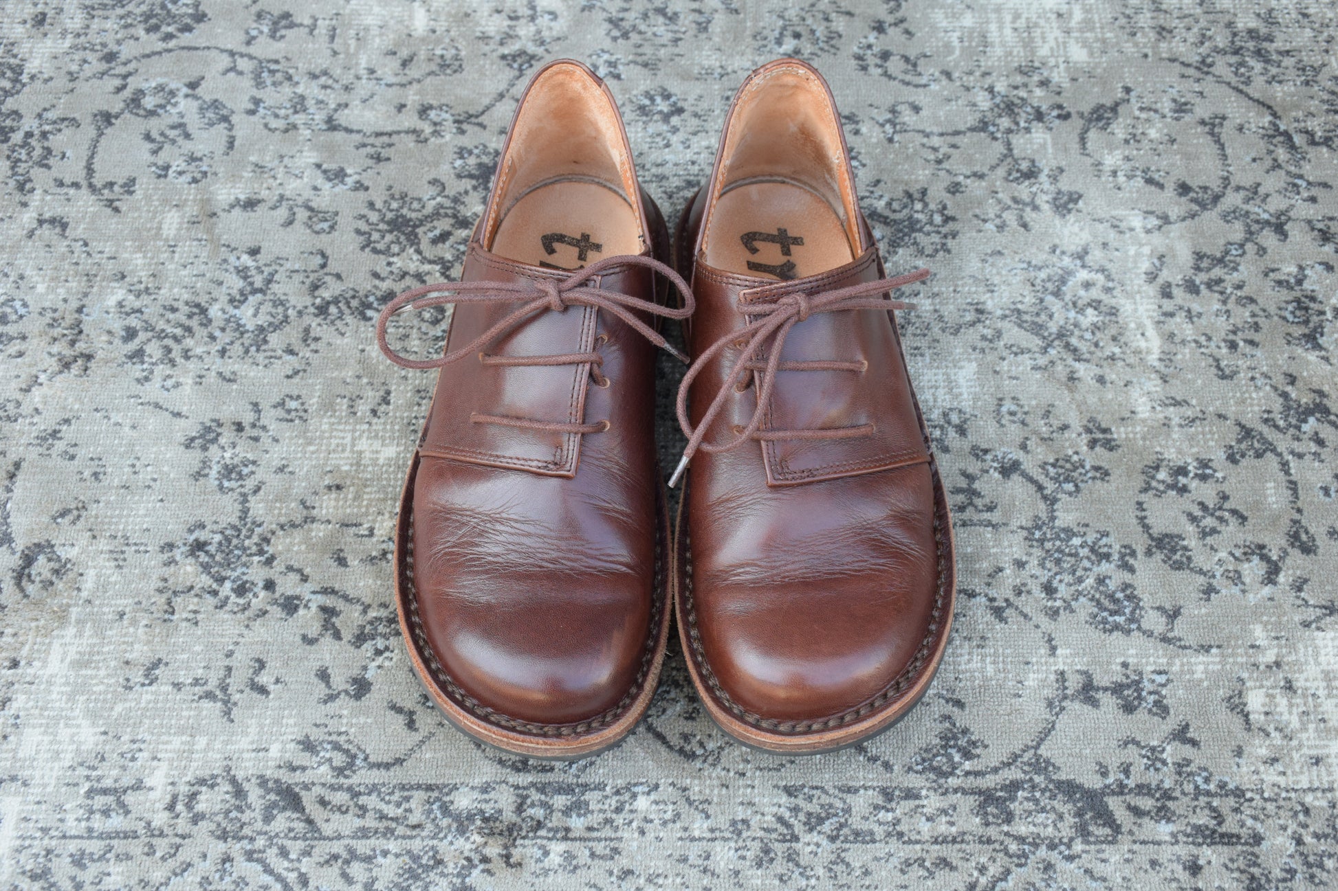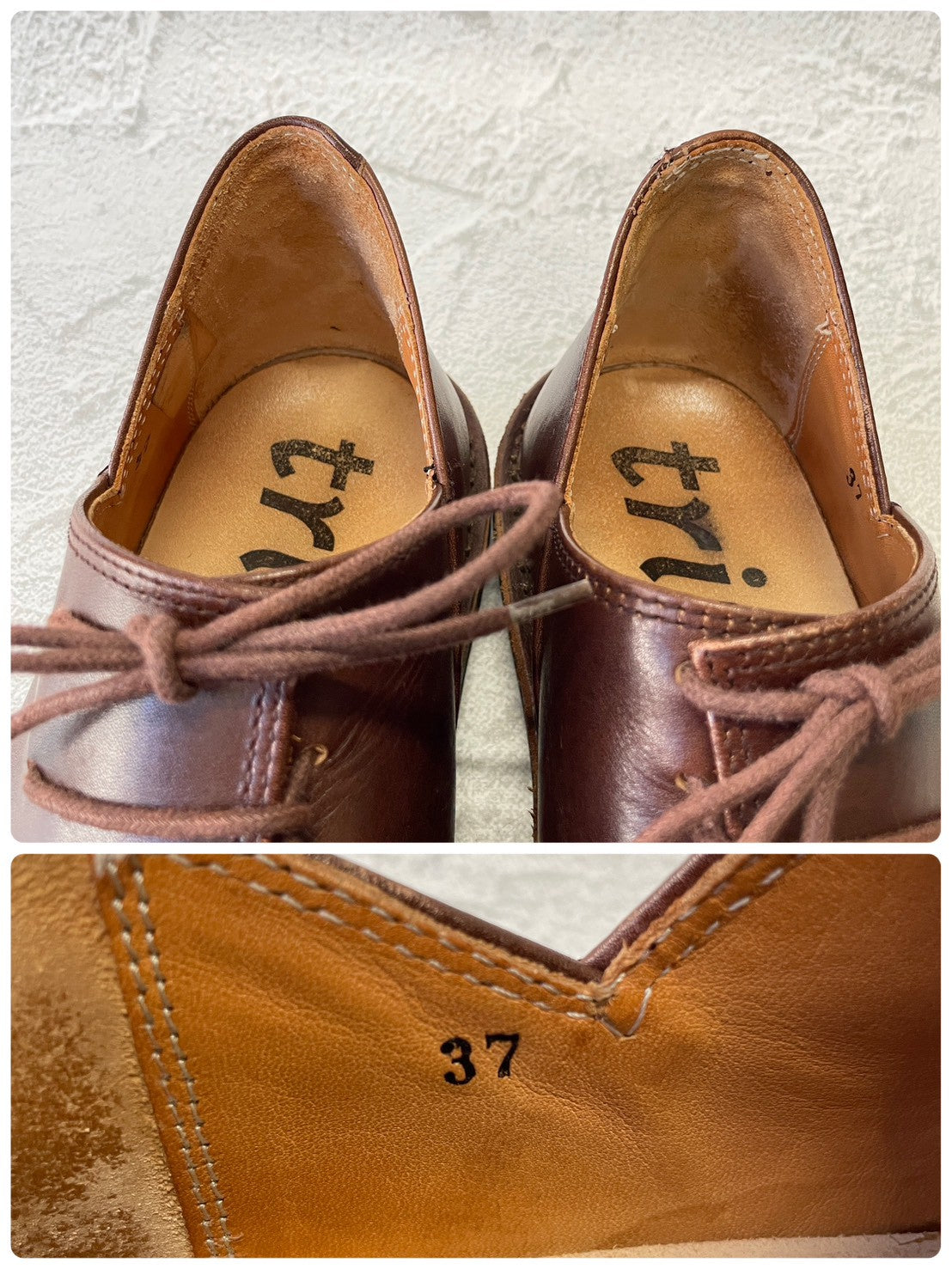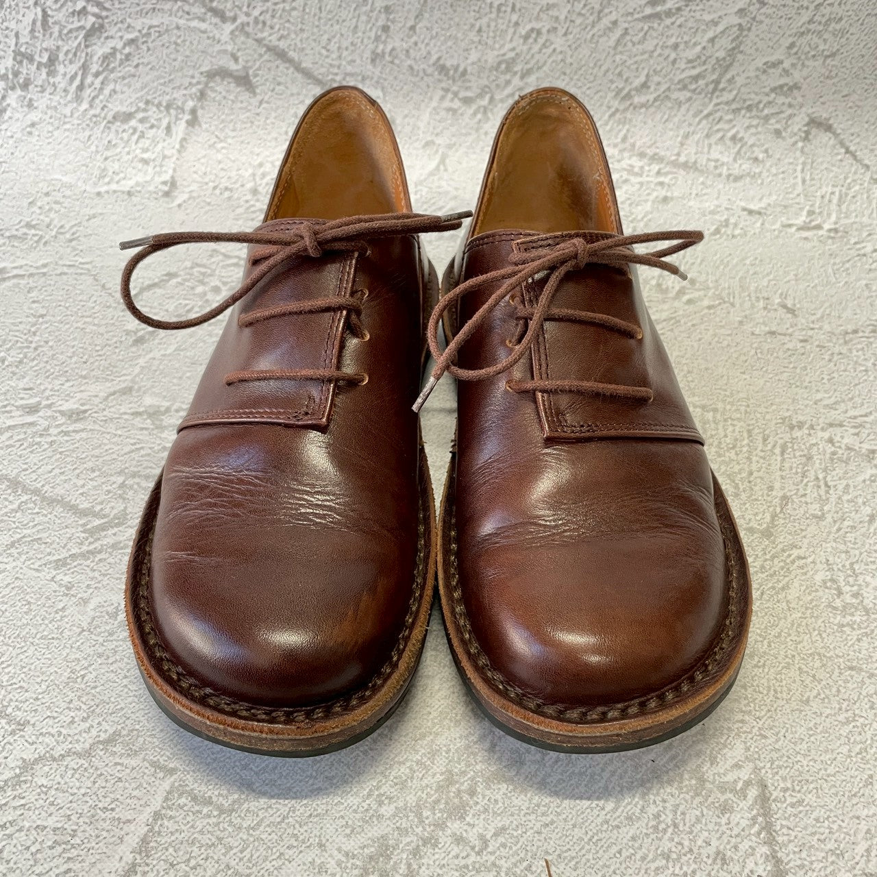 『機能美と造形美が融合した、トリッペンの快適レザーシューズ』 ~~~~~商品詳細~~~~~ 【ブランド】Trippen トリッペン 【モデル】Haferl ハーフェル 【サイズ】37(23.5〜24.0cm相当) 【アウトソール】全長27cm / 横幅10.5cm / ヒール高さ2.5cm 【カラー】茶 / ブラウン 【ソール】ラバーソール 【仕様】コンフォートシューズ / レースアップ 【付属品】箱 ~~~~~商品説明~~~~~ 【コメント】 ドイツ発のシューズブランド Trippen(トリッペン)の定番人気モデル「Haferl(ハーフェル)」です。ナチュラルレザーの風合いを活かした独自のデザインと、足に優しいラウンドトゥ設計が特徴。人間工学に基づいた快適な履き心地と、アートピースのような佇まいを兼ね備えた一足です。普段履きから街歩きまで、さまざまなシーンで活躍してくれます。 【コンディション】 ・アッパー(上部)→ 軽い履きジワあり ・ライニング(内側)→ 良好な状態 ・ソール(靴底)→ わずかに減りあり ・靴の総評 → 全体的にきれいな状態で、美品コンディションです。独特のデザインと快適性を兼ね備えた、トリッペンらしい一足をぜひご体感ください。 ※状態は写真でもご確認ください。 _______________ 【当店について】 ご購入前にショップ情報をご確認ください。 W3384.56