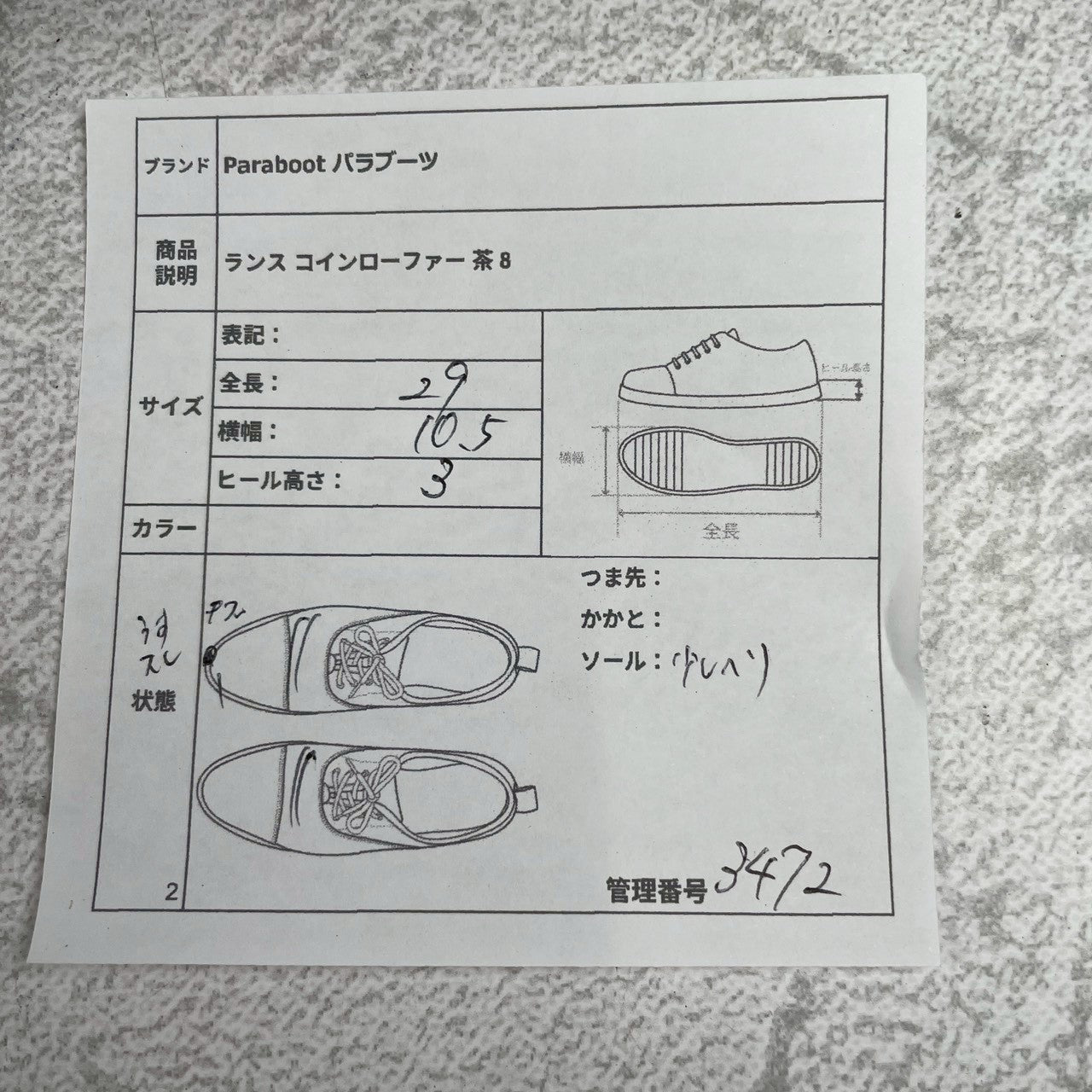 【アウトソール】全長29cm / 横幅10.5cm / ヒール高さ3cm