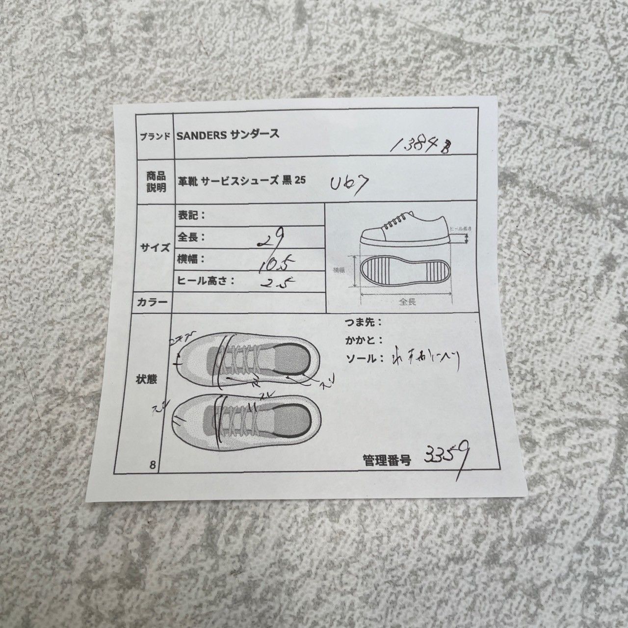 英国の老舗ブランド SANDERS(サンダース)より、1384型のサービスシューズです。クラシックな佇まいと実用性を兼ね備えたデザインで、ビジネス・礼装など幅広いシーンで活躍します。黒のプレーン外羽根スタイルは、靴好きにも定番支持される一足。ラスト266の木型は程よいボリューム感を持ちつつもすっきりした見た目が特徴です。
