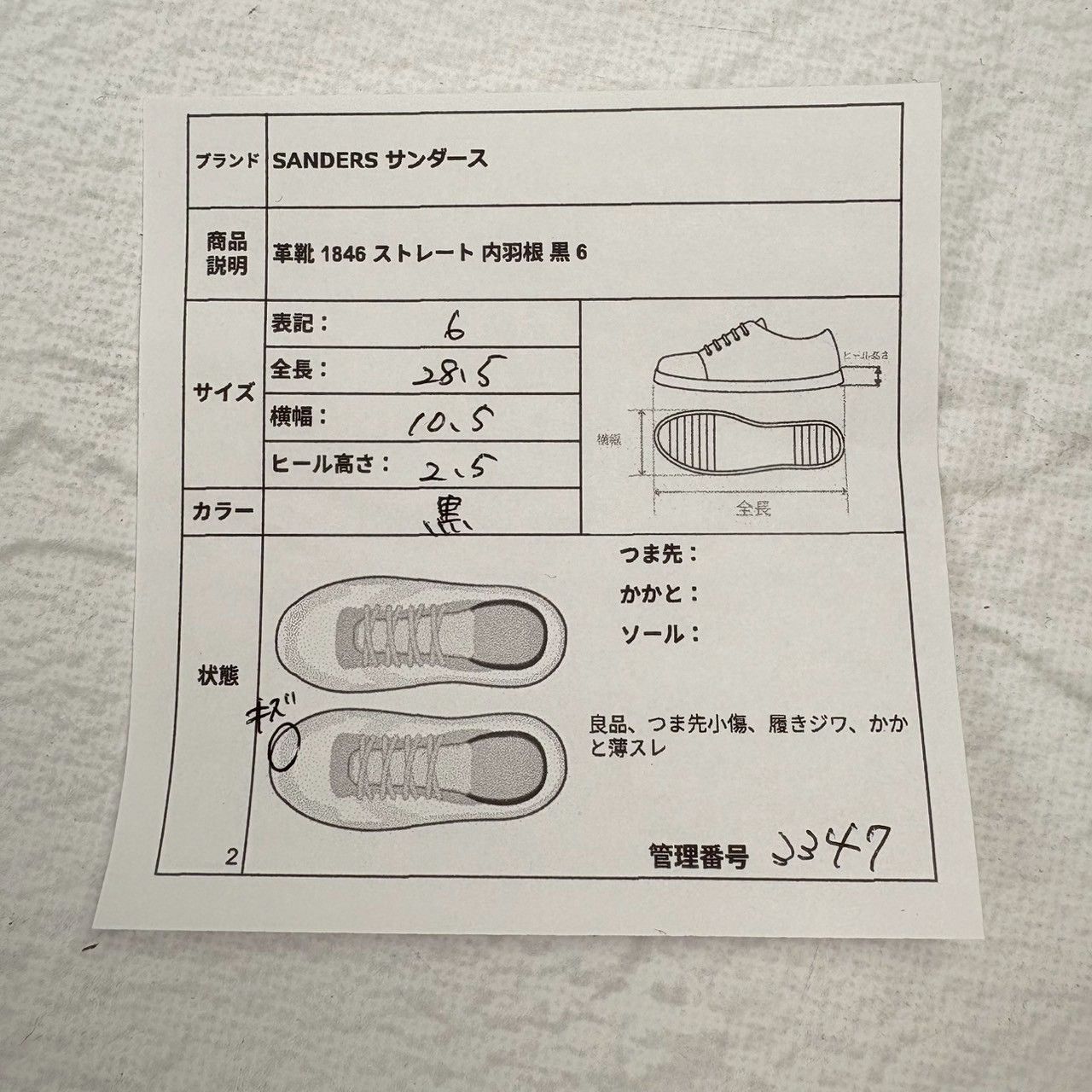【良品】SANDERS サンダース 1846 ストレートチップ 内羽根 黒 ブラック UK6 / 25cm ダイナイトソール【W3347】