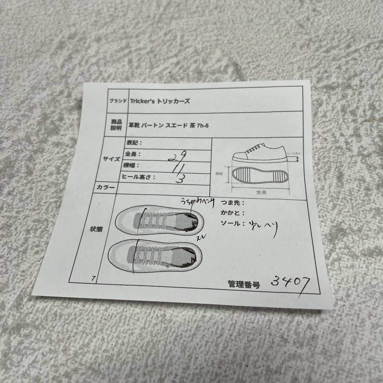 【良品】TRICKER’S トリッカーズ 7252 BOURTON バートン ウィング 外羽根 スエード リッジウェイ 茶 ブラウン UK7.5 / 7h-5 / 26cm【W3407】