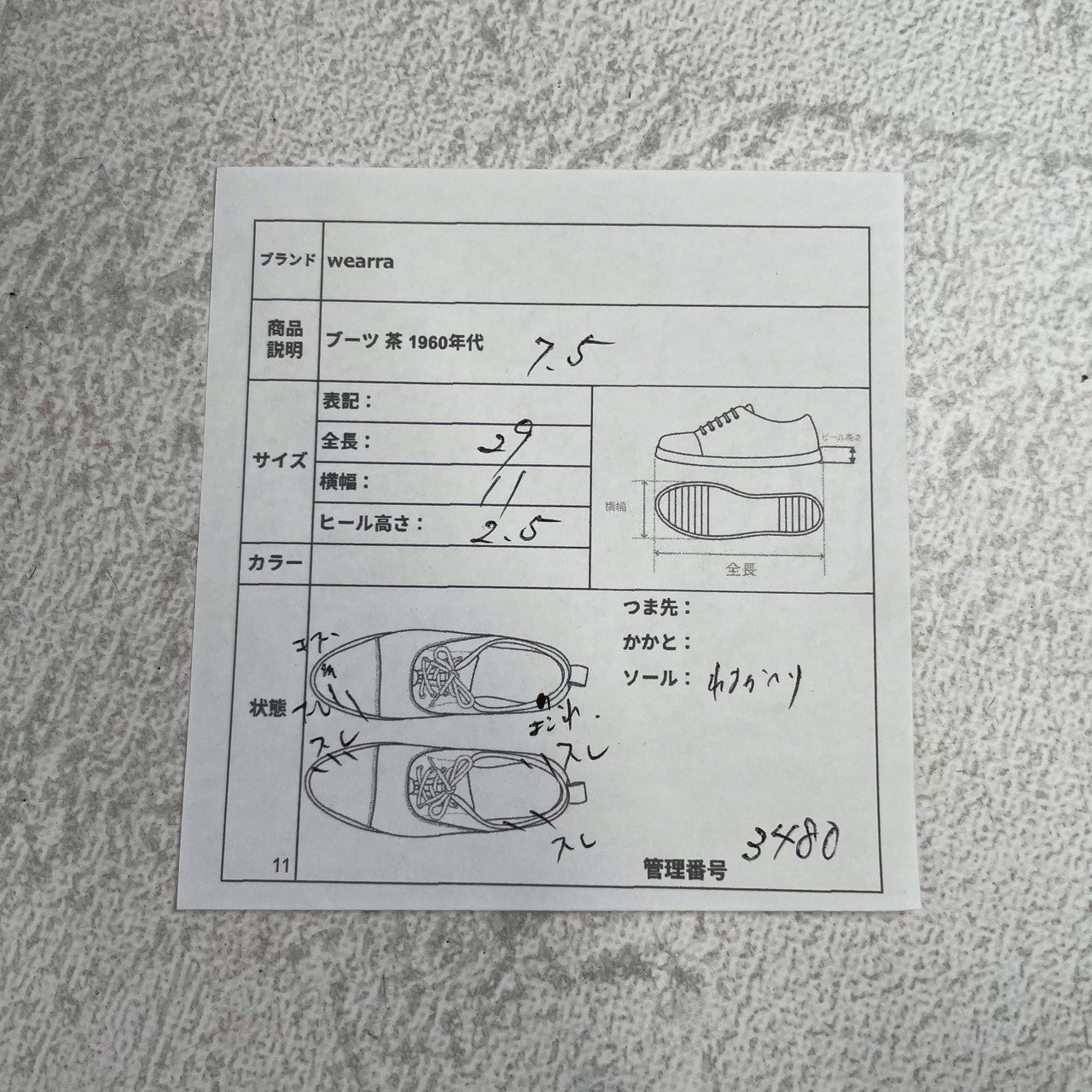 ・靴の総評→「良品」と言える、半世紀以上の時を経てきたとは思えないほど良好なコンディションです。ヴィンテージ特有の深みのある色気が出ており、しっかりとケアをしながら履き継がれてきたことが伺えます。当時の英国靴らしい堅牢な造りは健在で、これからも長く愛用いただける一足です。