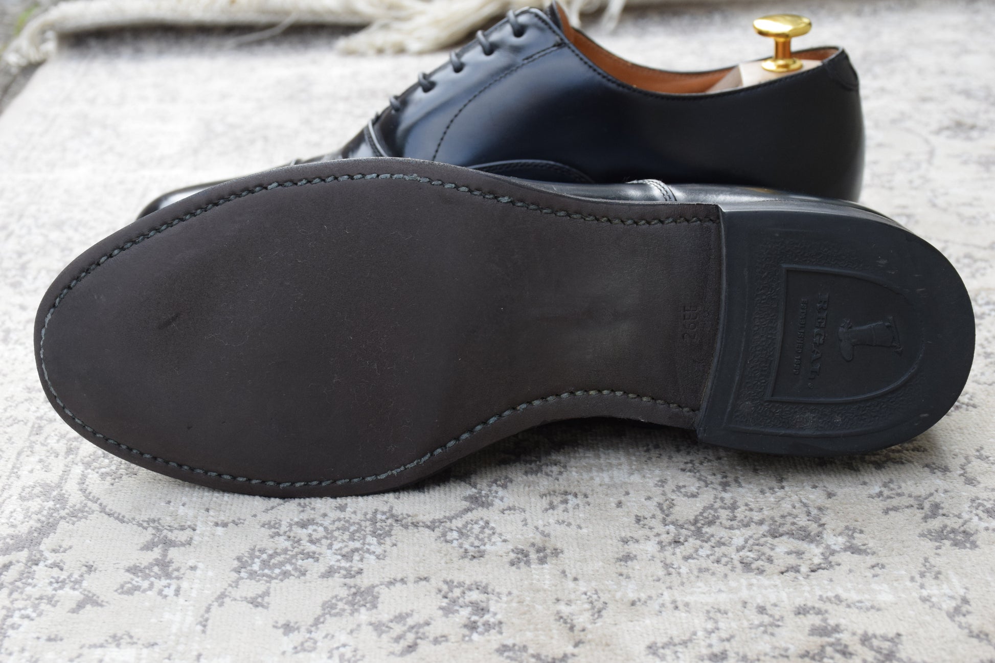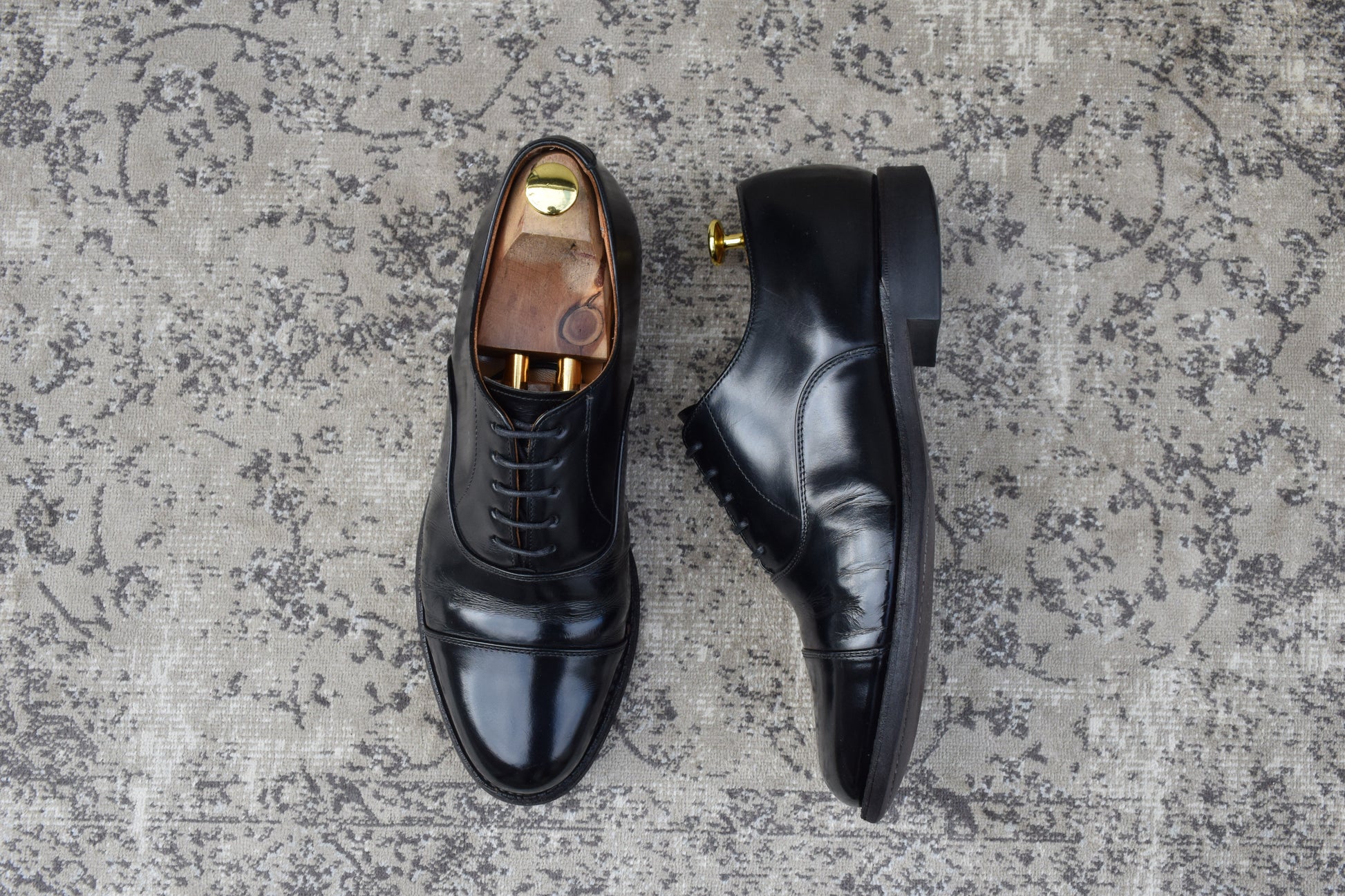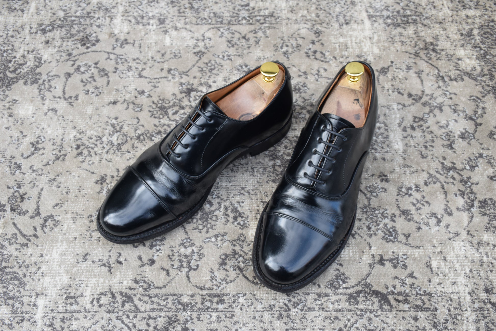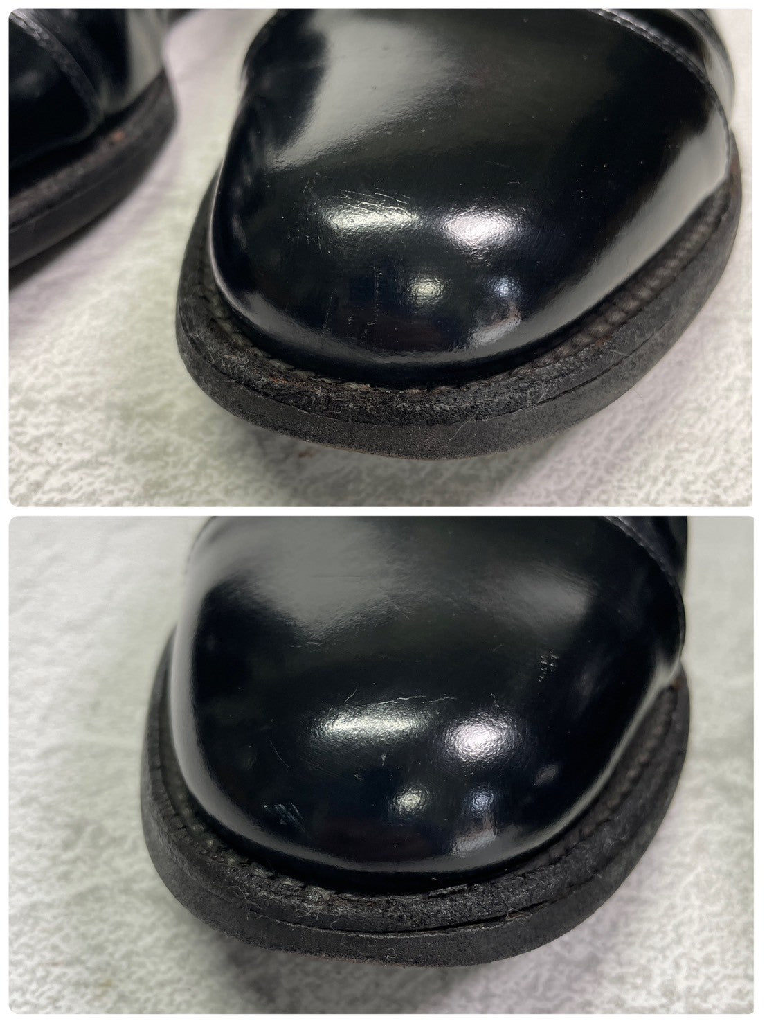 ・靴の総評→やや使用感はあるものの、ビジネス用途にはまだまだ実用的な一足です。ガラスレザーならではの扱いやすさがあり、毎日のローテーション用にもおすすめです。
