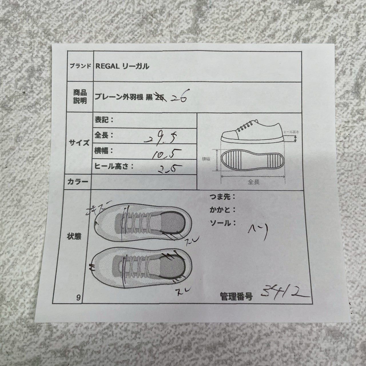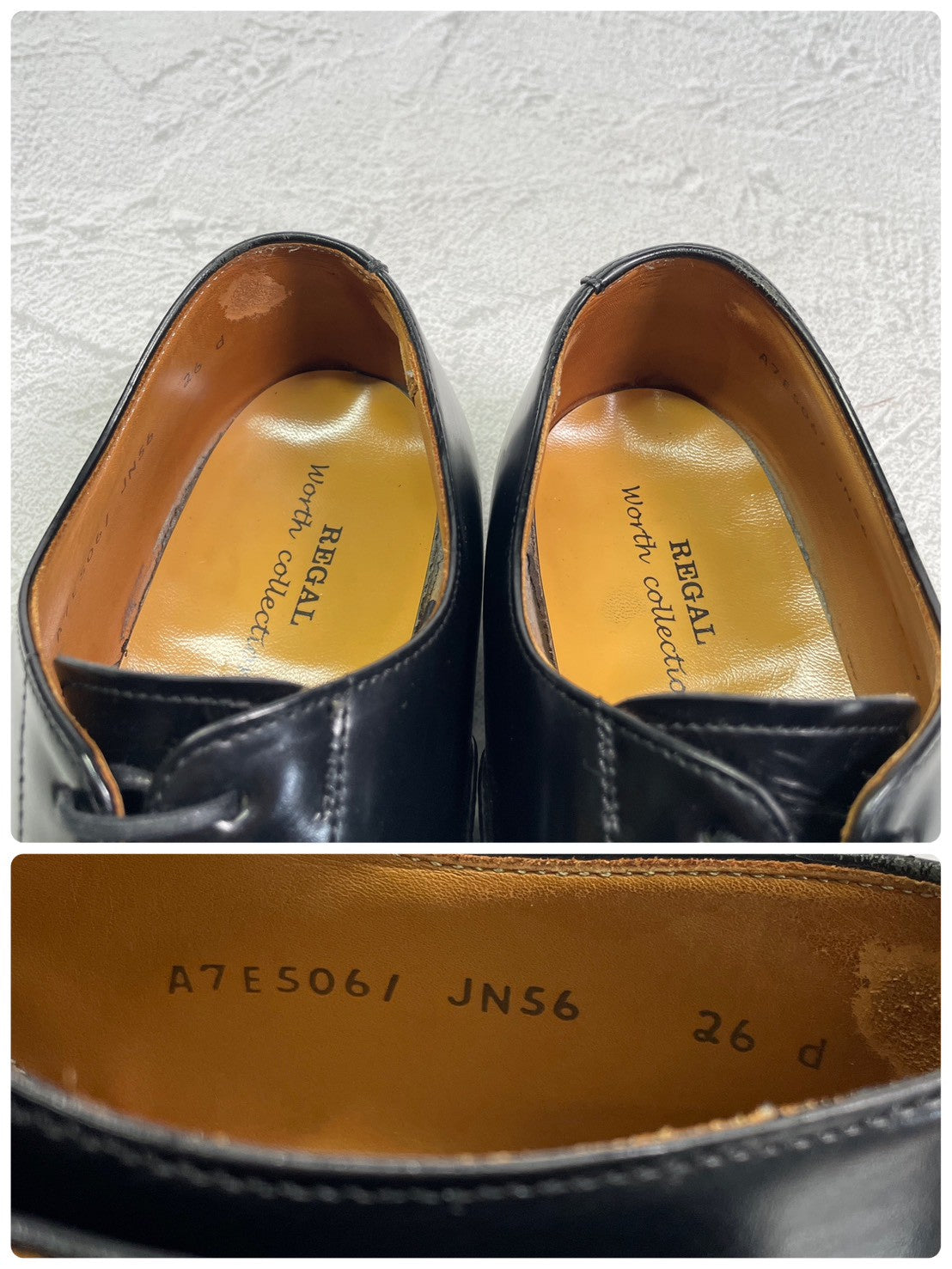 REGAL リーガル ストレートチップ 内羽根 ガラスレザー 黒 ブラック BLACK 26cm【W3412】