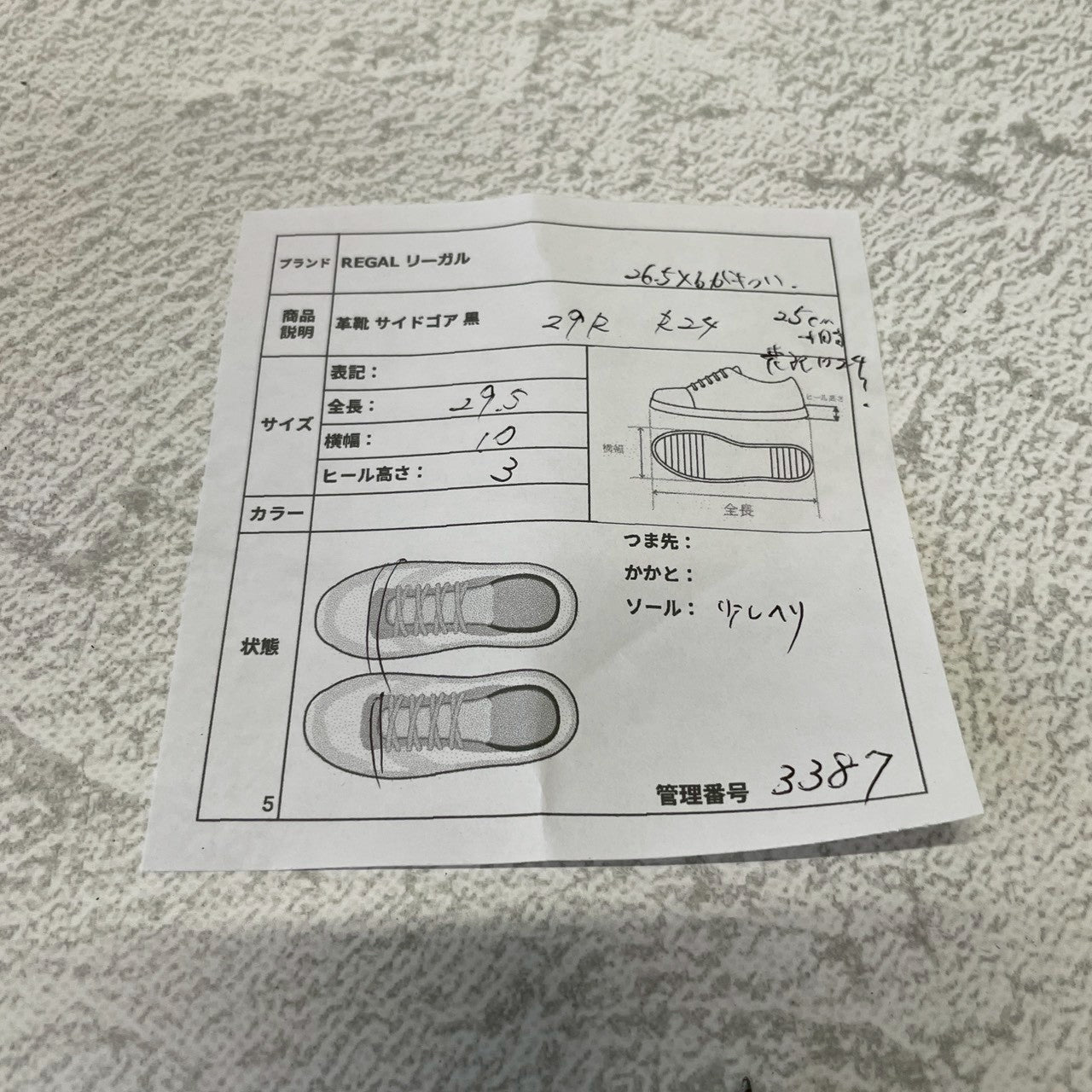 ・靴の総評 → 使用感はあるものの、まだまだご活用いただける一足です。リーガルらしい実直なつくりが魅力の一足。