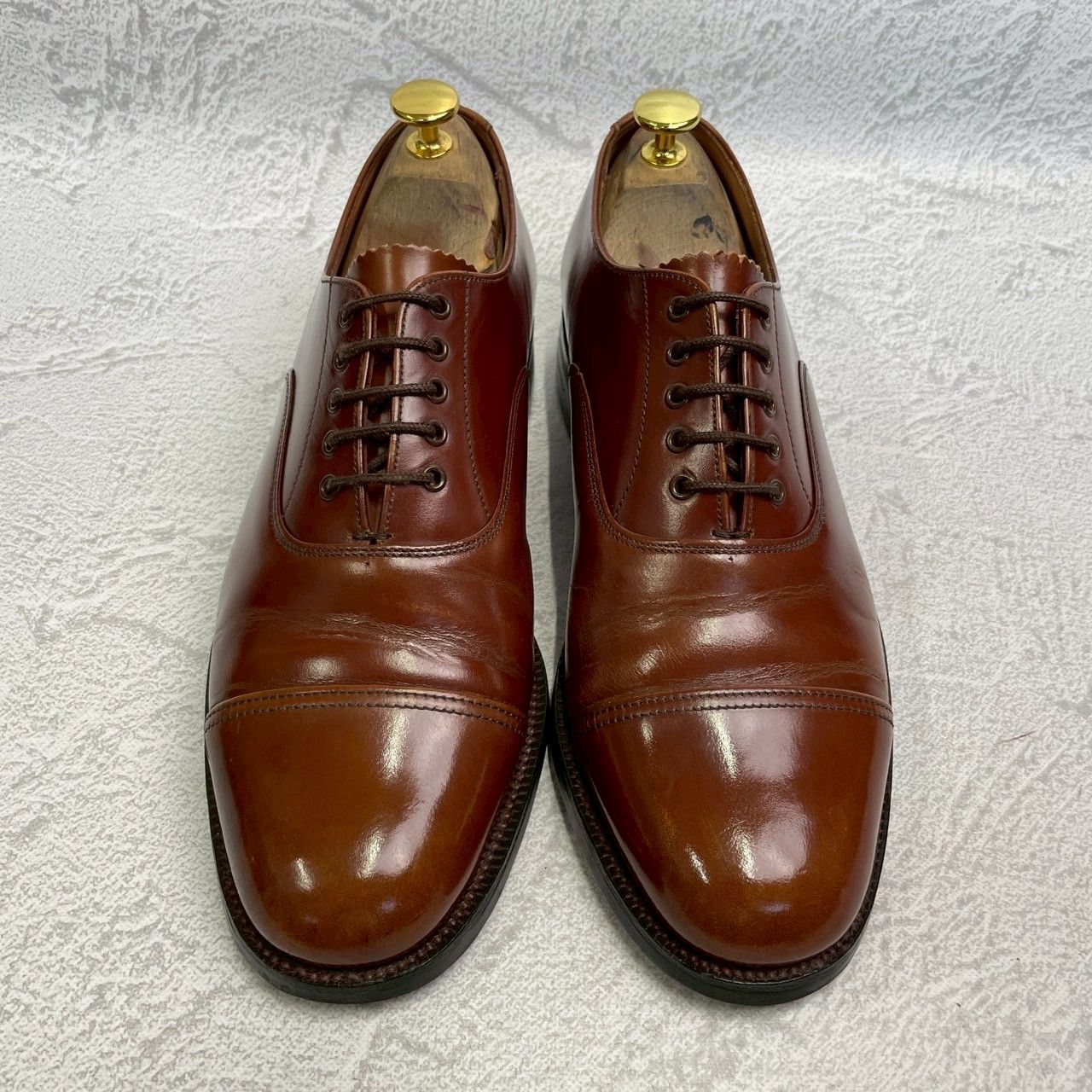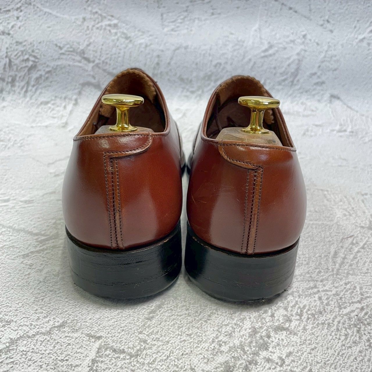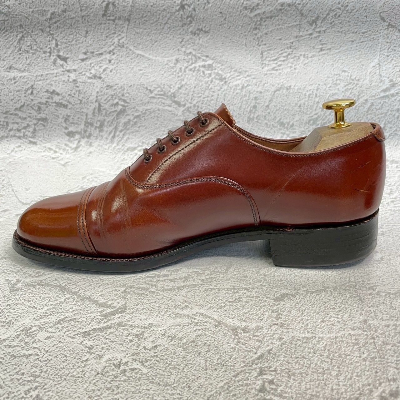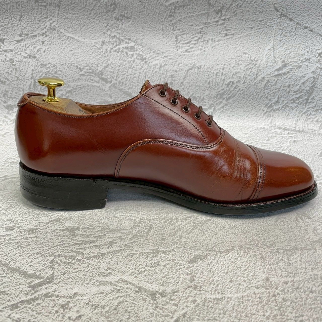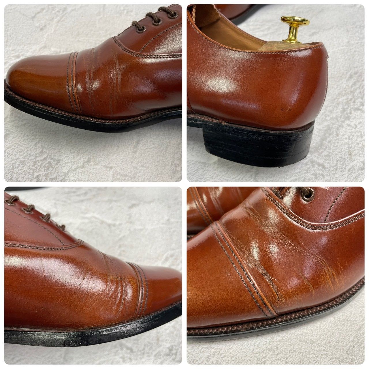 『英国の堅牢さと気品を纏う、サンダース 9802T ストレートチップ』 【ブランド】SANDERS サンダース 【モデル】9802T ストレートチップ 内羽根 オックスフォード 【サイズ】UK7.5 / 7 1/2 / 26.5~27cm 【アウトソール】全長29cm / 横幅10cm / ヒール高さ3cm(目安) 【カラー】茶 ブラウン BROWN 【ソール】ダイナイトソール 【ラスト】506 【仕様】内羽根 / ストレートチップ / オックスフォード 【付属品】なし 【コメント】 イギリス軍のオフィシャルサプライヤーとしても知られる名門ブランド、SANDERS(サンダース)の内羽根ストレートチップ「9802T」。落ち着いたブラウンカラーと端正なシルエットが魅力で、ビジネスやフォーマルはもちろん、カジュアルなスタイルにも合わせやすい万能モデル。耐久性のあるダイナイトソールを採用しており、雨の日にも安心してお使いいただけます。 【スタイル提案】 ビジネス・きれいめ・カジュアル・古着・雨の日 【コンディション】 ・アッパー(上部):履きじわあり。部分的にクラック・傷あり。 ・ライニング(内側):使用感はあるが大きな破れなし。 ・ソール(靴底):ダイナイトソール、少し減りあり。 ・靴の総評:英国らしい質実剛健さと気品を兼ね備えたサンダースのストレートチップ。使用感はございますが、まだまだ現役で活躍できる商品です。 ※詳細は写真でもご確認ください。 W3364.50