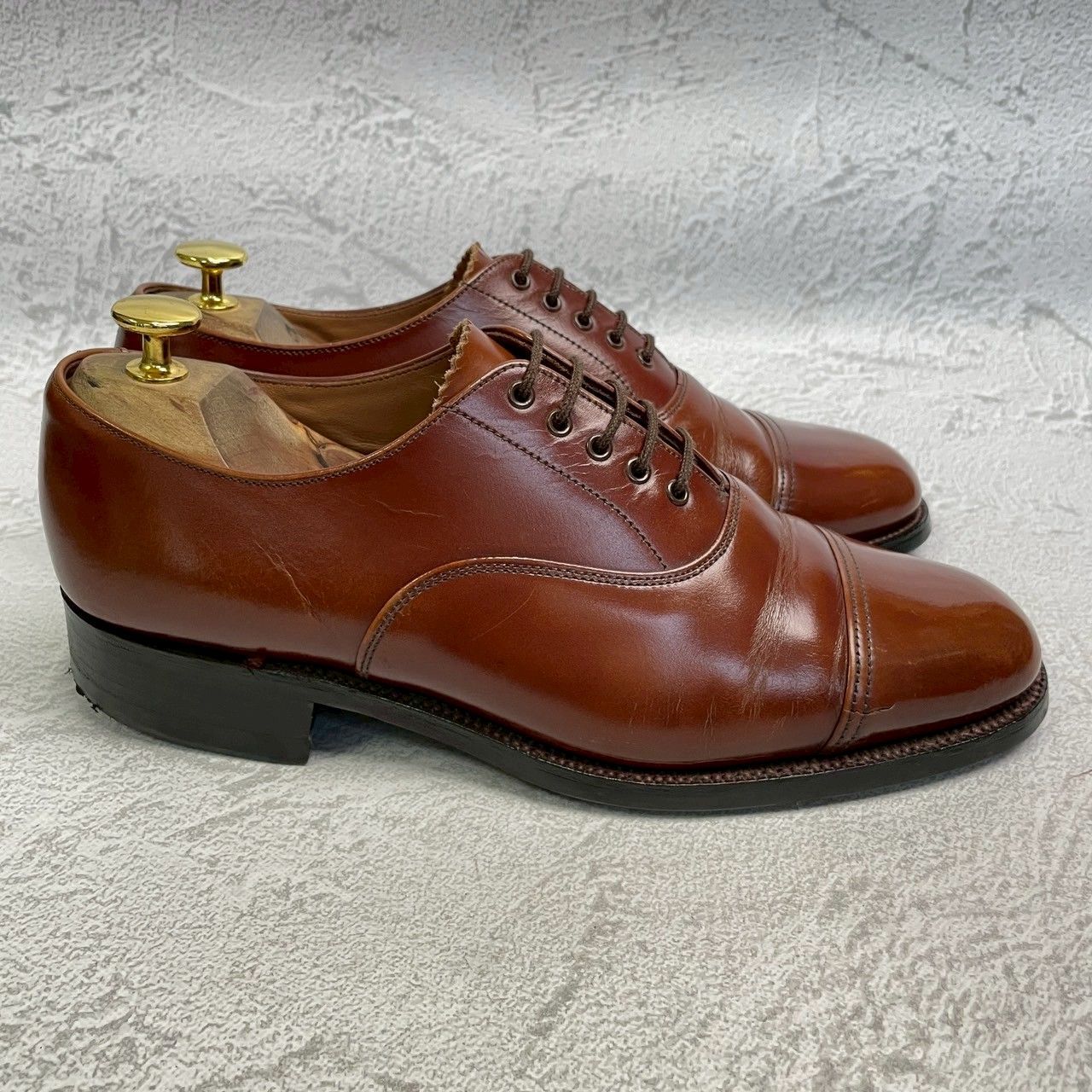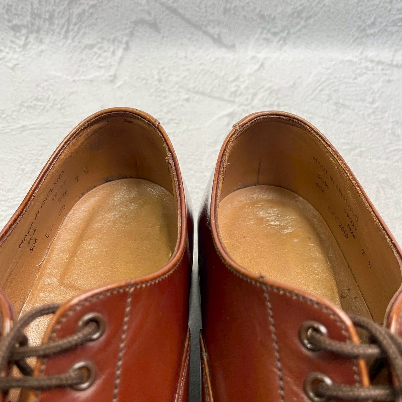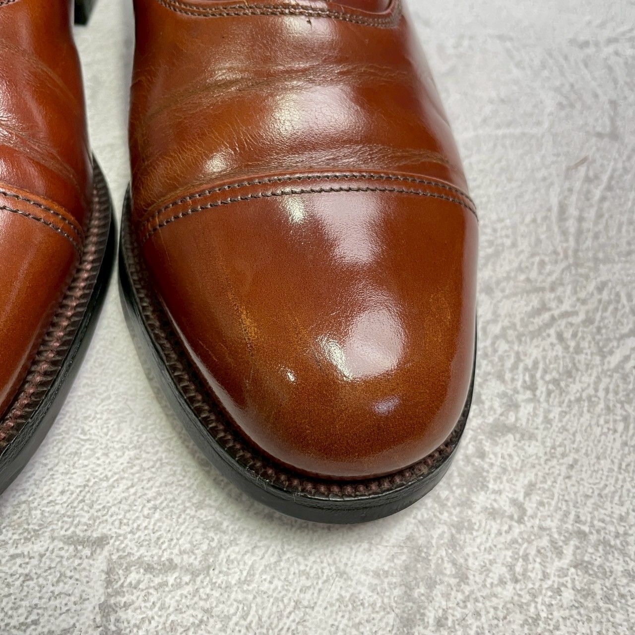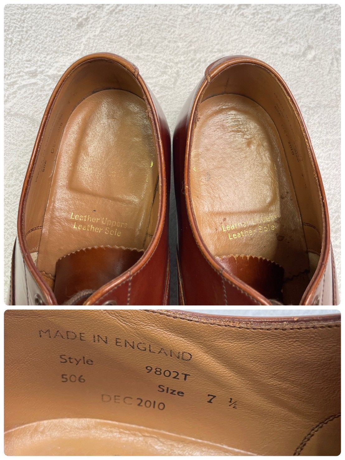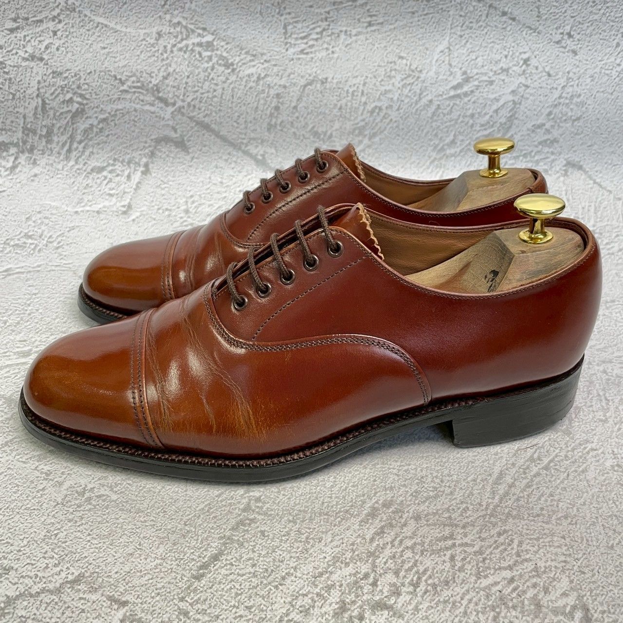 『英国の堅牢さと気品を纏う、サンダース 9802T ストレートチップ』 【ブランド】SANDERS サンダース 【モデル】9802T ストレートチップ 内羽根 オックスフォード 【サイズ】UK7.5 / 7 1/2 / 26.5~27cm 【アウトソール】全長29cm / 横幅10cm / ヒール高さ3cm(目安) 【カラー】茶 ブラウン BROWN 【ソール】ダイナイトソール 【ラスト】506 【仕様】内羽根 / ストレートチップ / オックスフォード 【付属品】なし 【コメント】 イギリス軍のオフィシャルサプライヤーとしても知られる名門ブランド、SANDERS(サンダース)の内羽根ストレートチップ「9802T」。落ち着いたブラウンカラーと端正なシルエットが魅力で、ビジネスやフォーマルはもちろん、カジュアルなスタイルにも合わせやすい万能モデル。耐久性のあるダイナイトソールを採用しており、雨の日にも安心してお使いいただけます。 【スタイル提案】 ビジネス・きれいめ・カジュアル・古着・雨の日 【コンディション】 ・アッパー(上部):履きじわあり。部分的にクラック・傷あり。 ・ライニング(内側):使用感はあるが大きな破れなし。 ・ソール(靴底):ダイナイトソール、少し減りあり。 ・靴の総評:英国らしい質実剛健さと気品を兼ね備えたサンダースのストレートチップ。使用感はございますが、まだまだ現役で活躍できる商品です。 ※詳細は写真でもご確認ください。 W3364.50